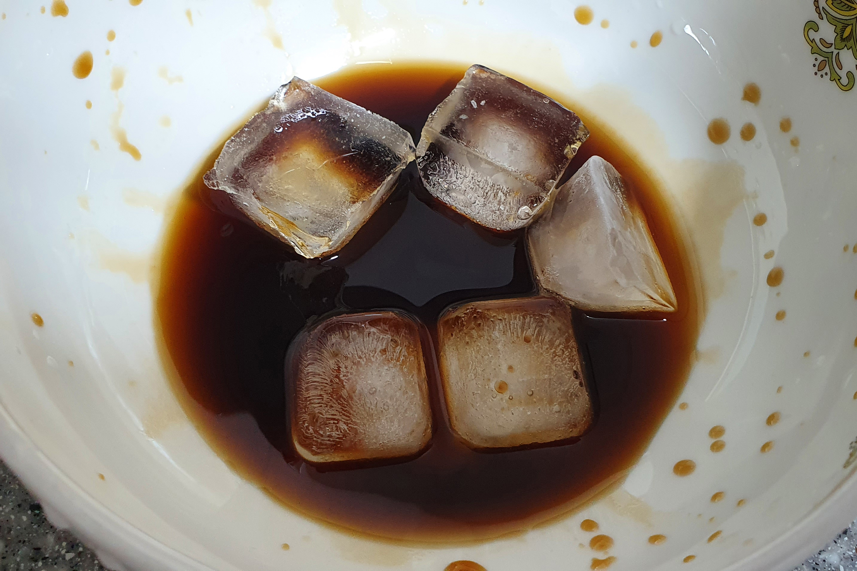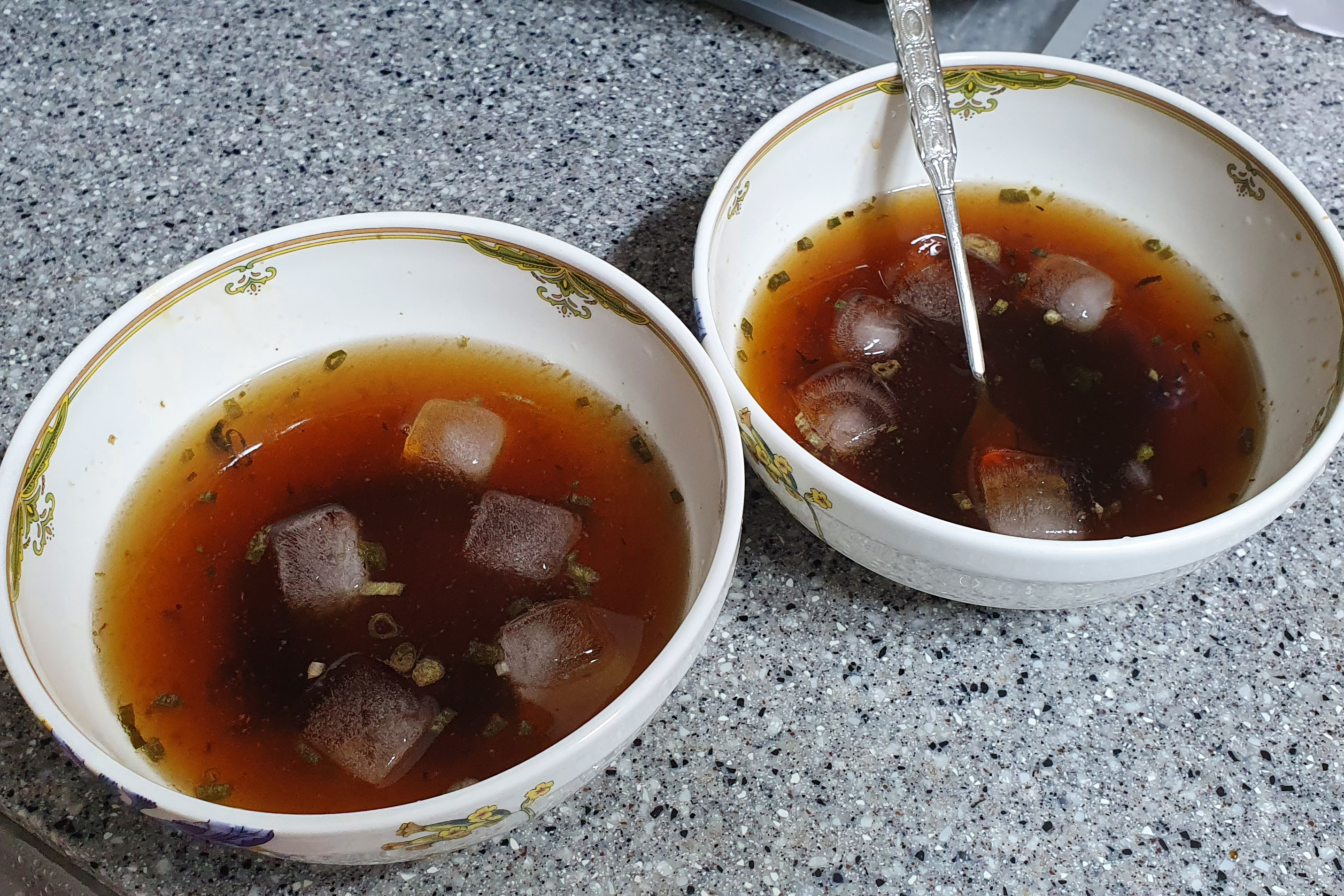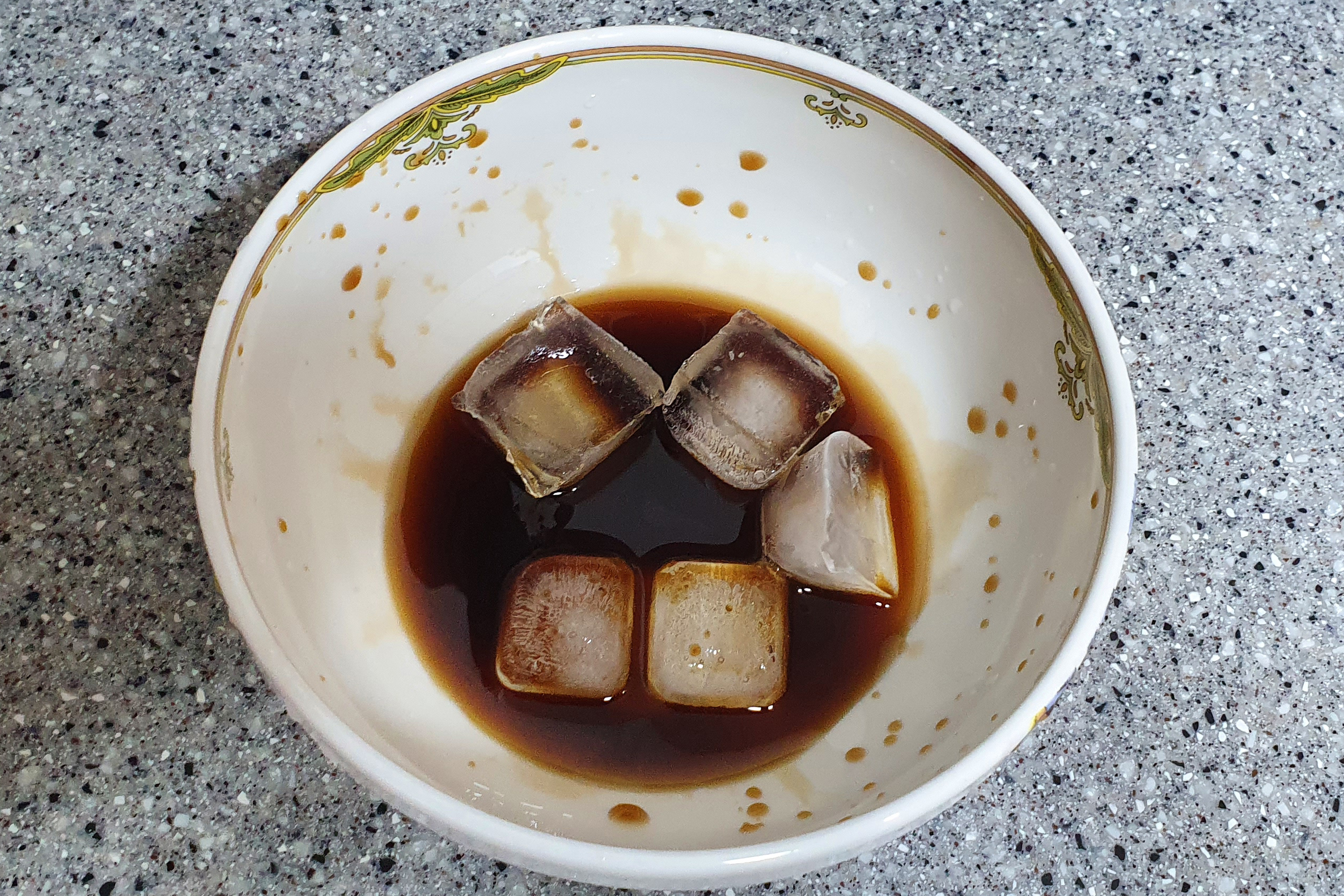 다 익은 면을 흐르는 물과 얼음을 이용해 차갑게 했습니다. 차갑게 한 면은 탱탱해지는 것 같았습니다.