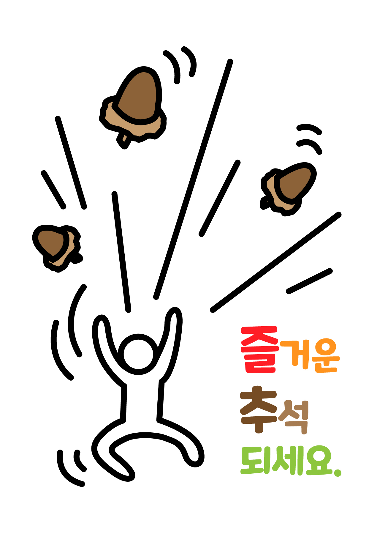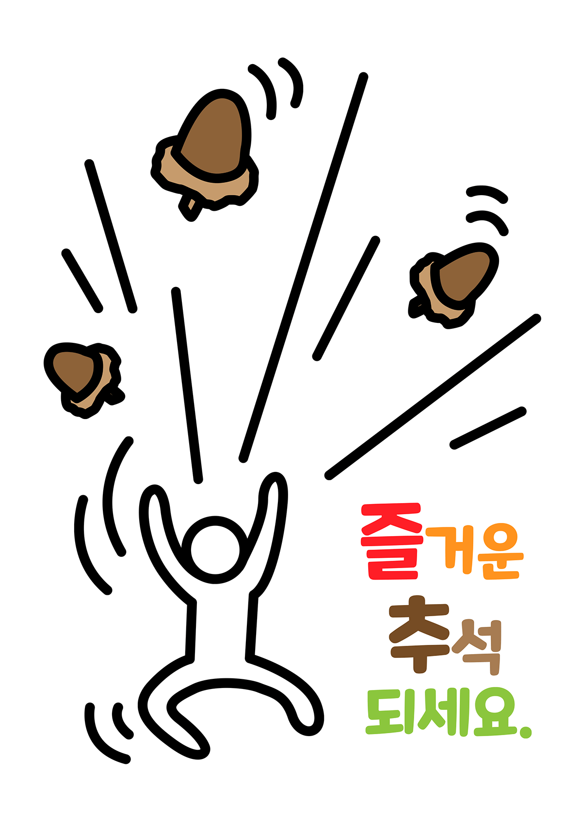 도토리를 만세 하며 뿌리는 이미지입니다. 즐거운 추석 만세? 이런 느낌으로 그려보았습니다.