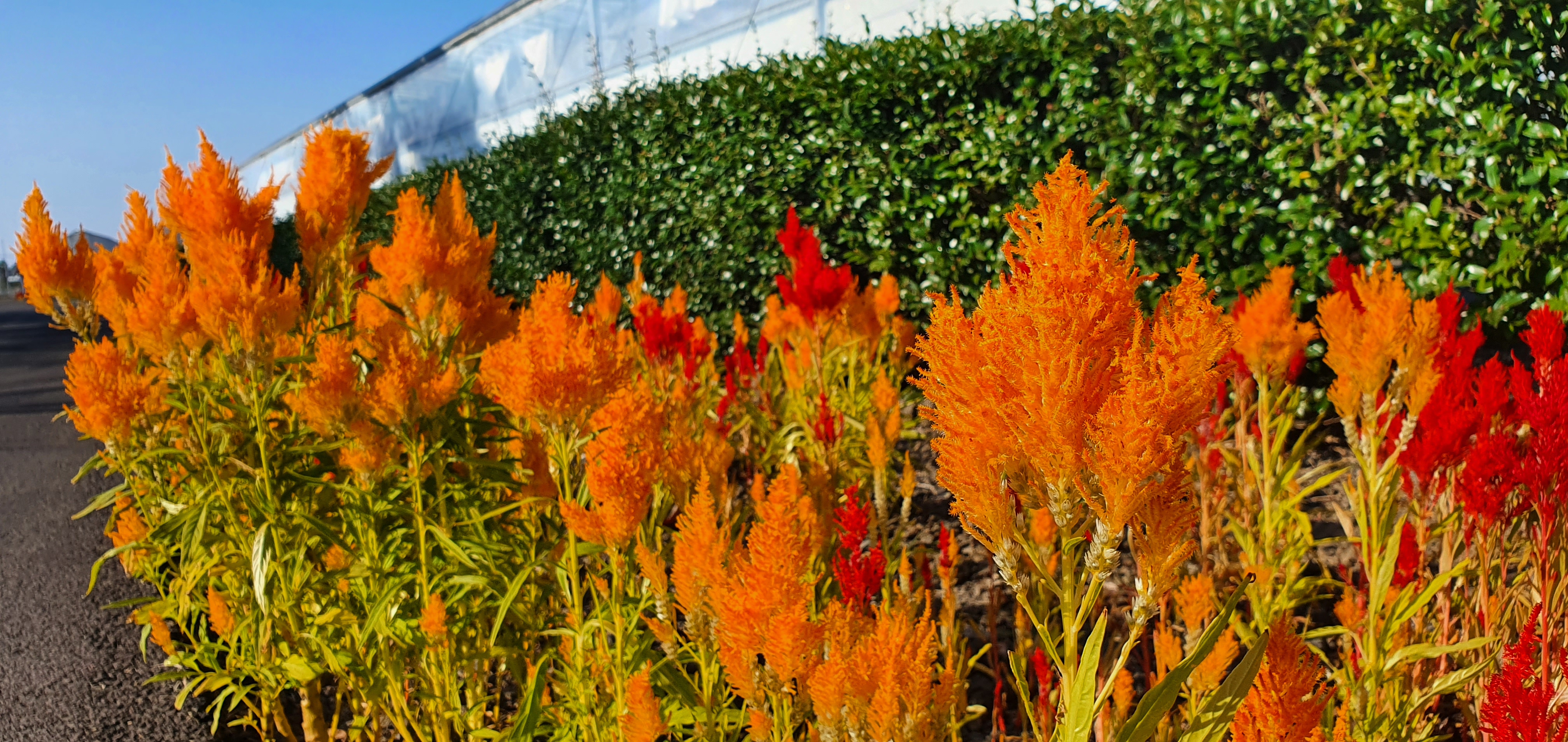 제주도 서부농업기술센터 길가에도 맨드라미가 있었습니다. 길가에 한줄로 있는 맨드라미도 예쁘네요.