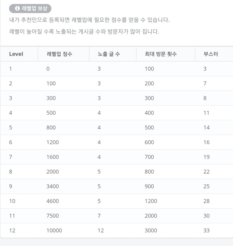 열심히 추천을 받아 12레벨이 되면 좋을 것 같다는 생각은 들지만 가능할까...? 쉽은 마음도 드네요 ㅋㅋㅋ 블로그 운영에 도움이 되셨길 바라며 이번 포스팅을 마칩니다. 감사합니다.