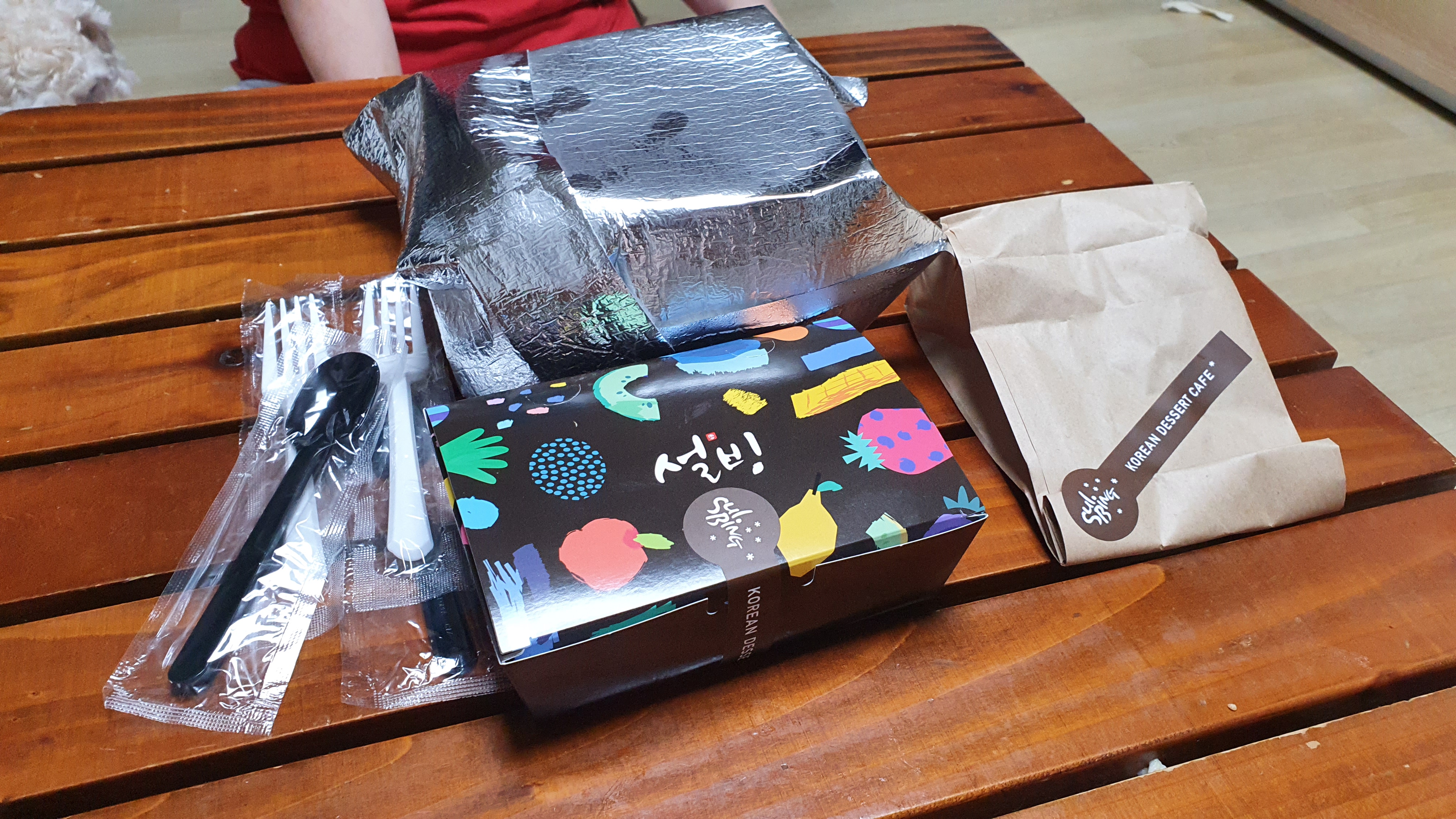 배달의민족으로 주문한 설빙 역곡점의 인절미세트가 도착했습니다. 위에 사진은 아직 뜯지 않은 상태입니다.