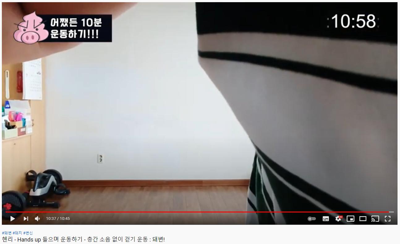 위에 사진에 나와있는 영상은 10분 정도 운동하는 영상입니다.