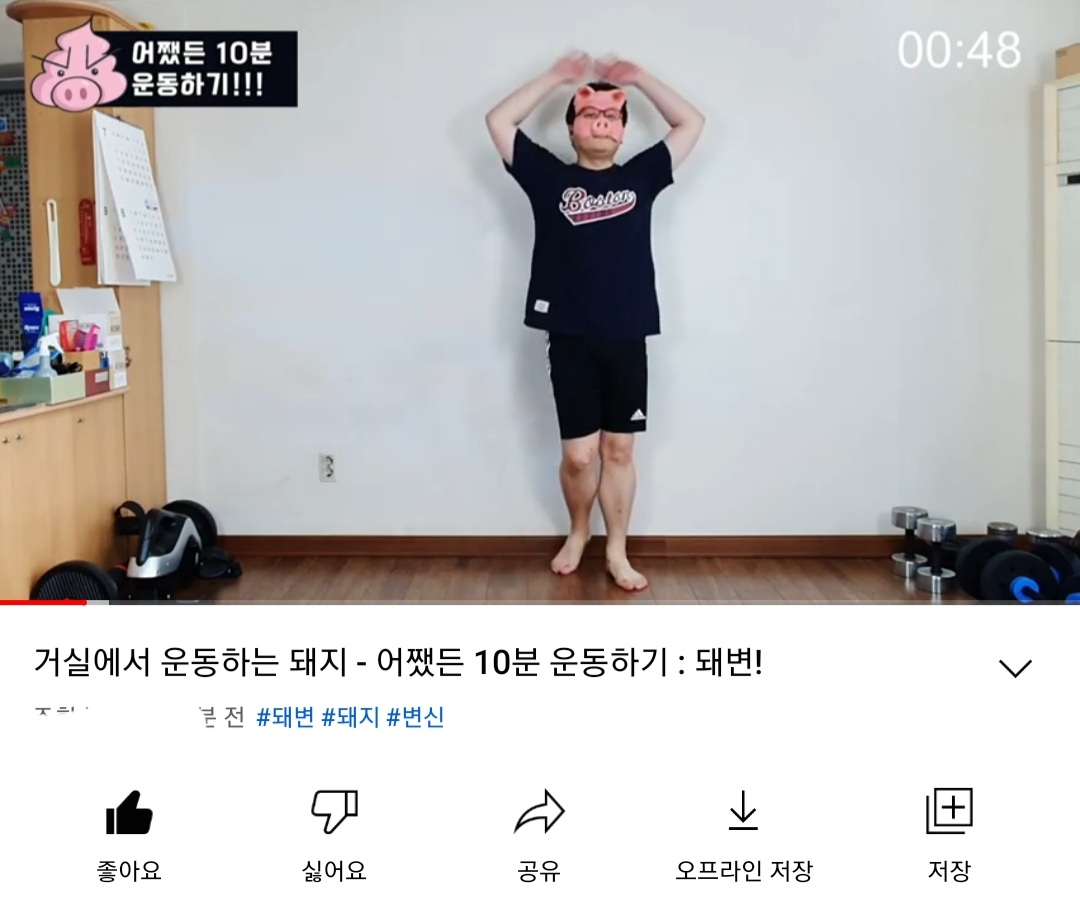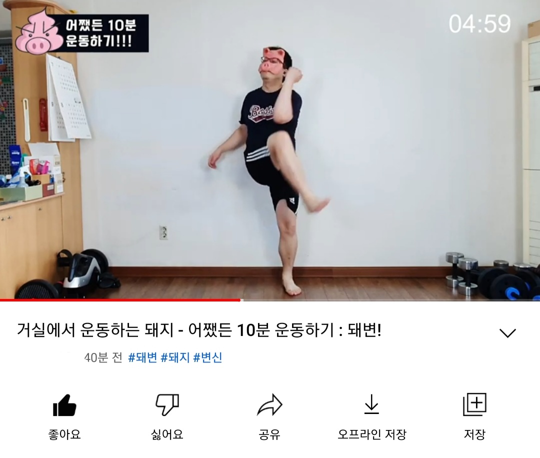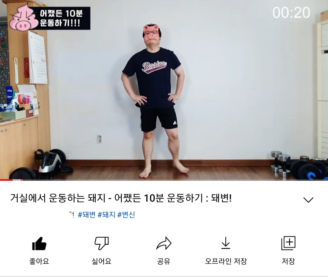 오늘은 유튜브 돼변채널의 거실에서 운동하는 돼지를 소개하겠습니다.