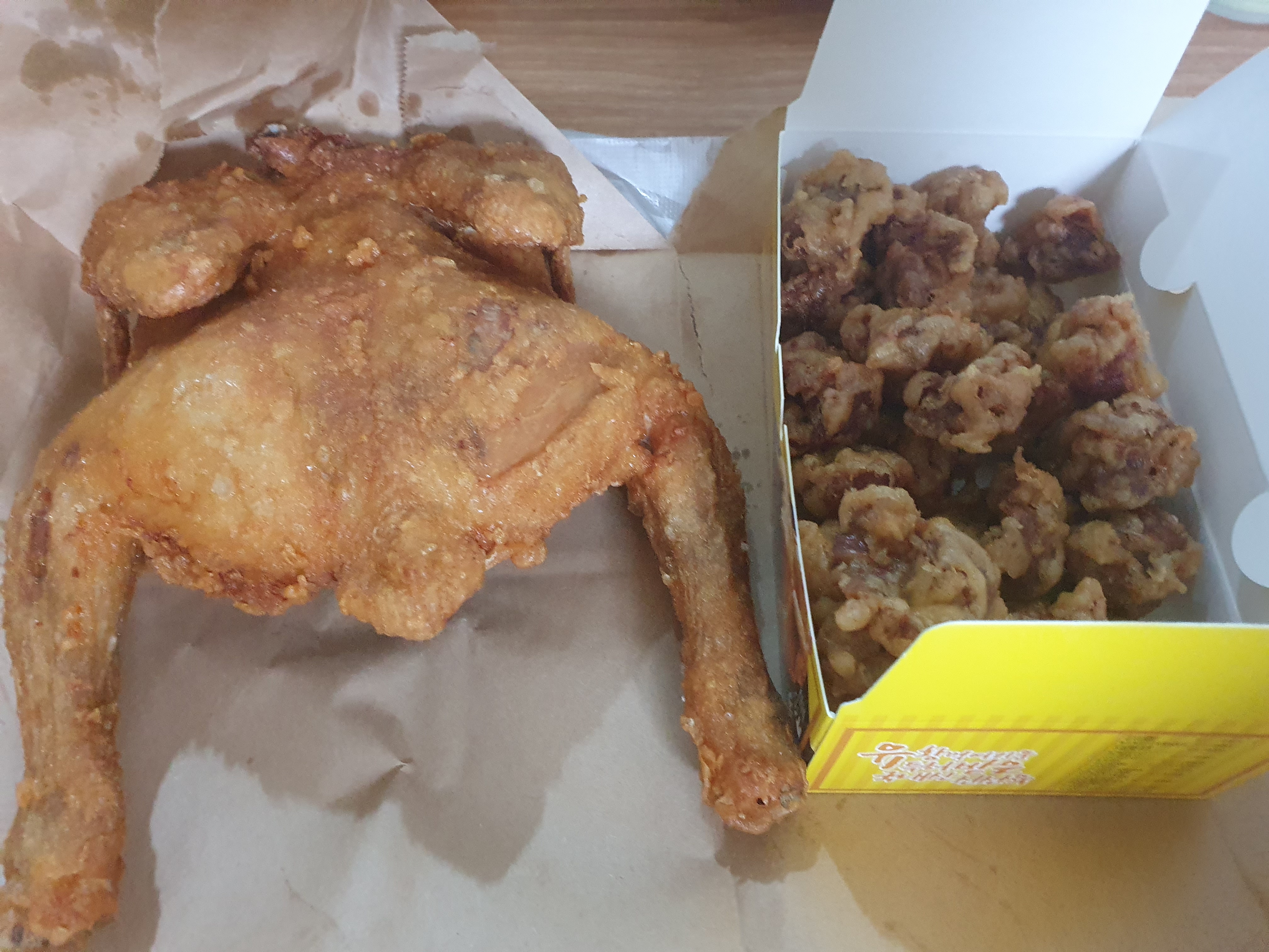 똥집은 약간 카레향이 나는 것 같았고 통닭은 짭짤해서 소금을 찍지 않고 먹어도 된다고 생각합니다. 개인 취향 차이가 있으니 이점은 그냥 참고만 해주세요~ㅋㅋㅋㅋㅋ
