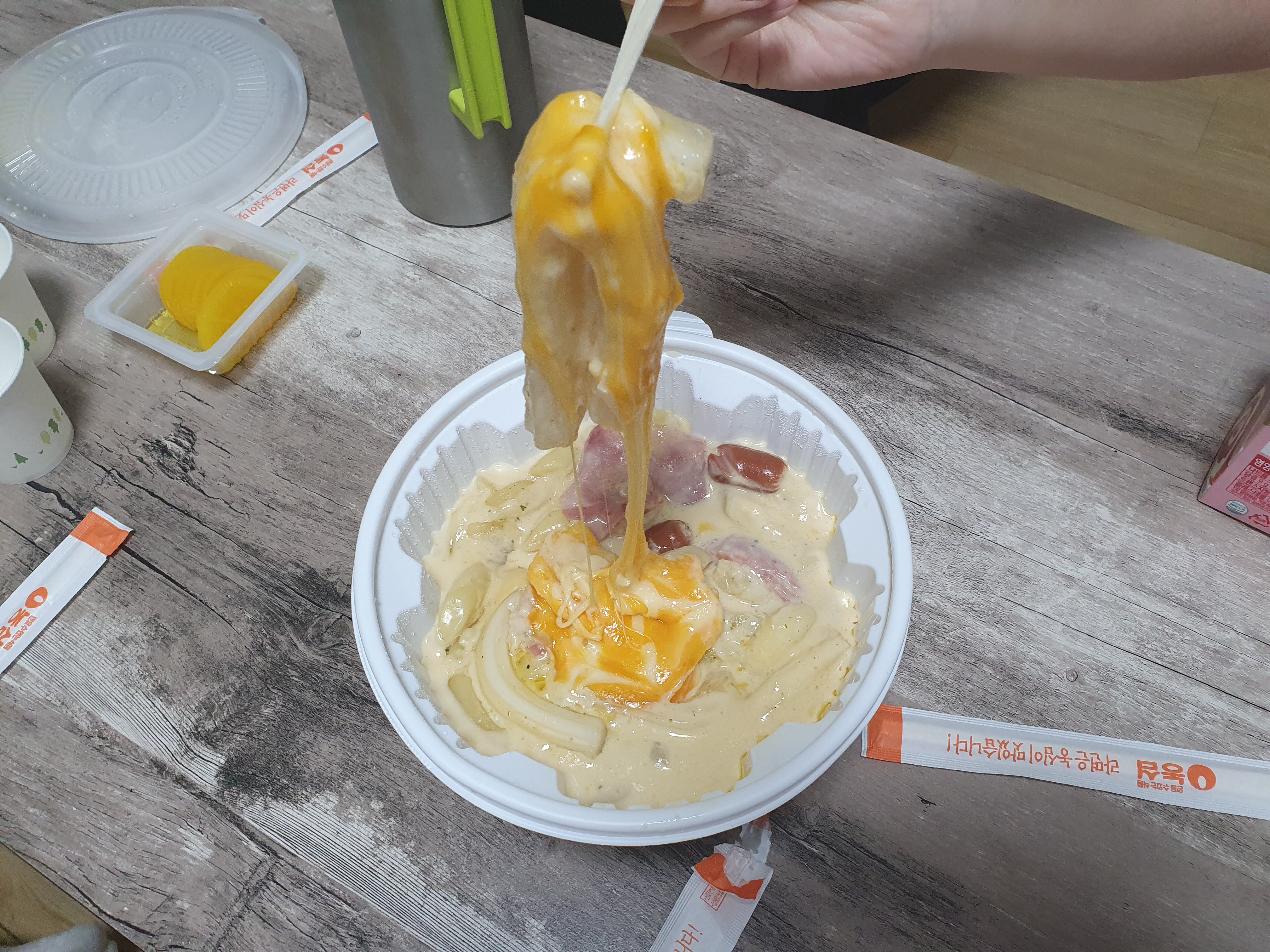 오! ㅋㅋㅋ 한 젓가락 집어 올렸는데 치즈가 늘어나는 것이 너무 맛있어 보이네요 ㅎㅎㅎ