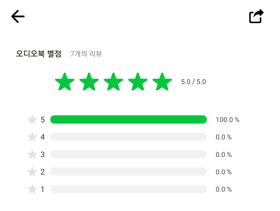 이 책에 대한 평점은 7개의 리뷰가 달렸는데 5.0 만점에 5.0이네요!!ㅋㅋㅋㅋㅋ 참고로 저는 평가하지 않았아요. 평가하지 않았지만 저는 5점을 주고 있답니다.