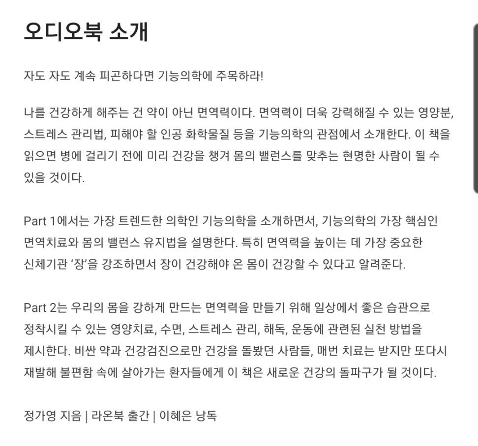 윌라 오디오북 추천으로 면역력을 처방합니다를 소개 했습니다. 한번 들어(읽어)보세요~