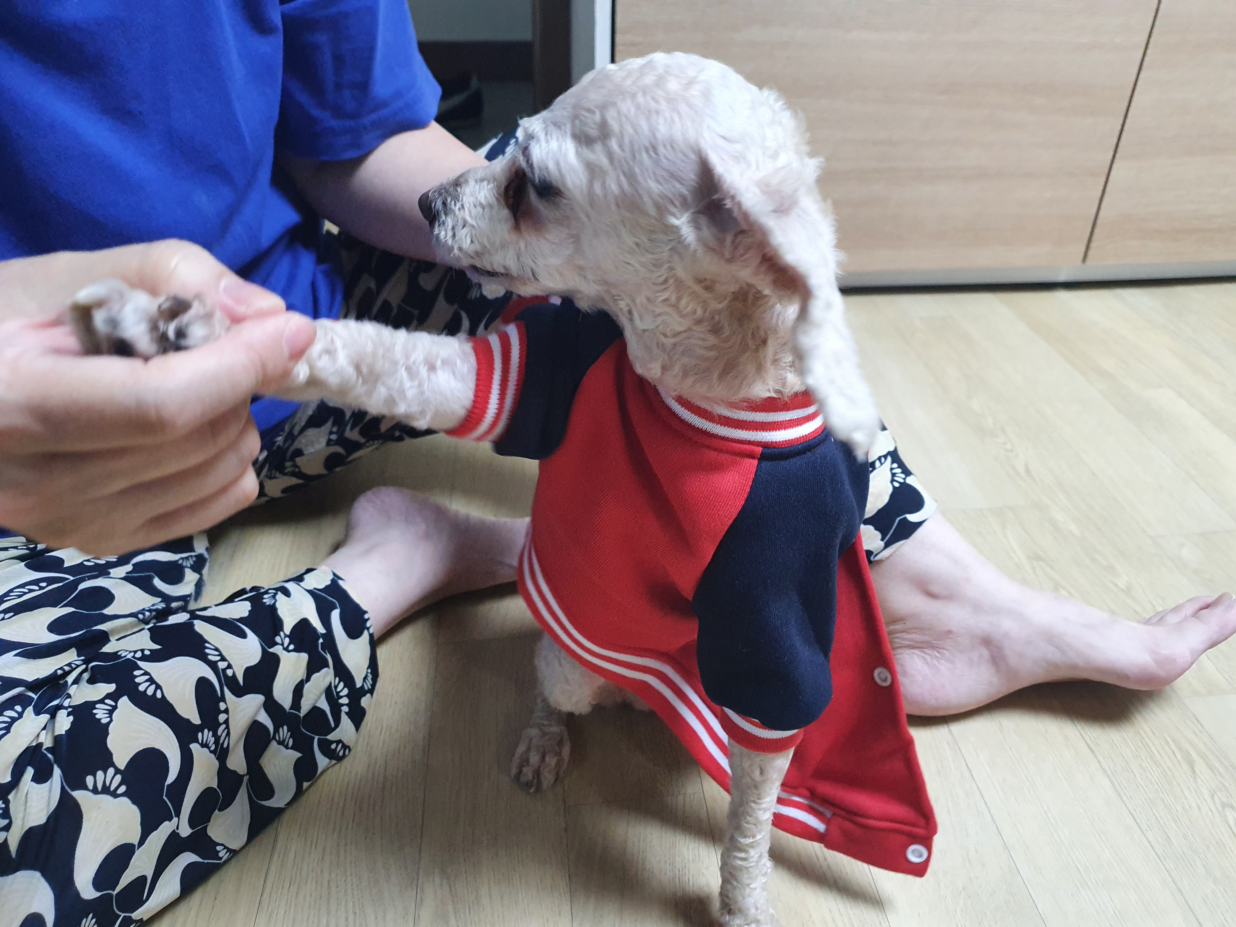 우리 강아지 옷 입혀 놓으니 대학생 강아지(?) 같네~