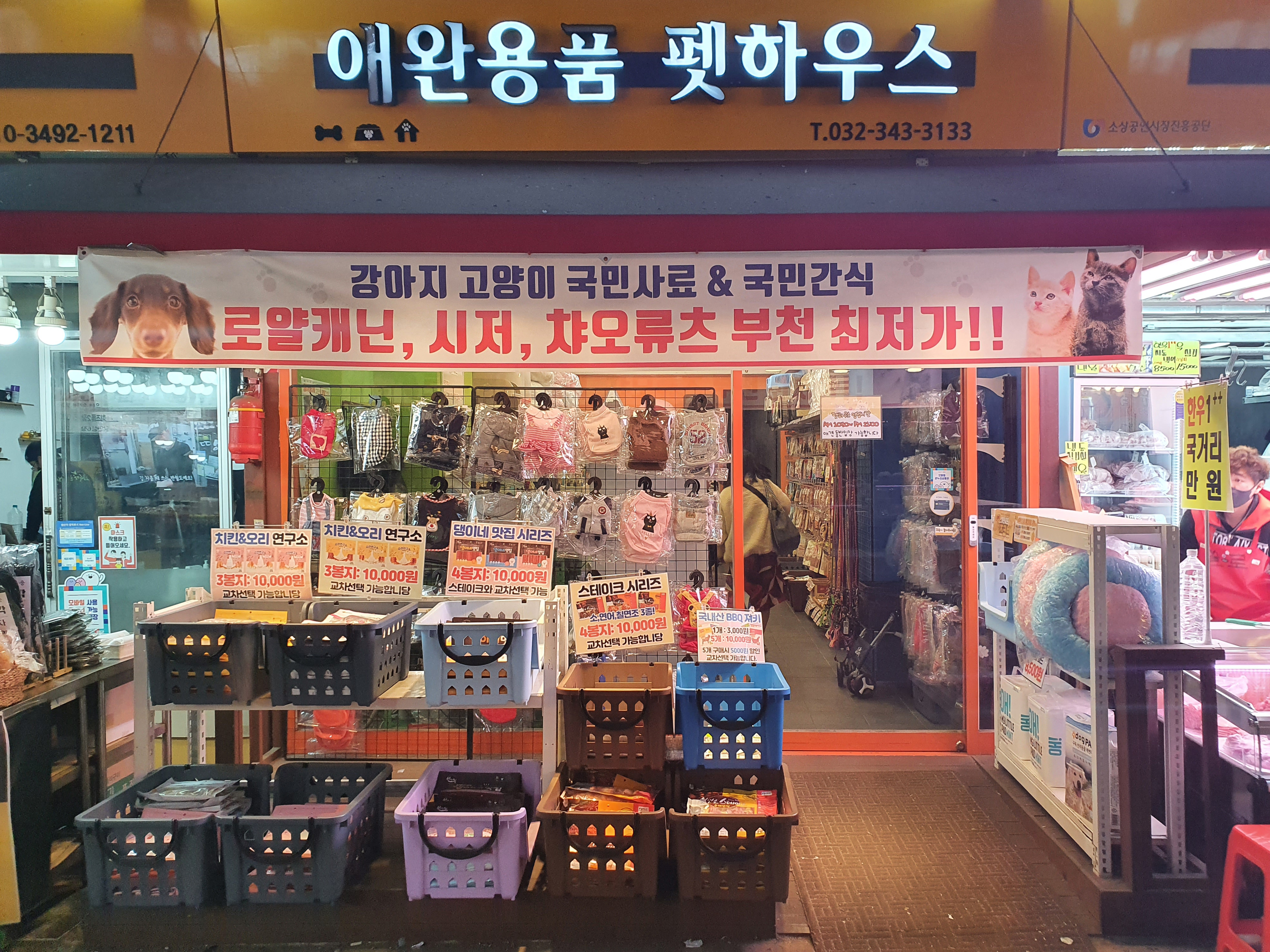 역곡 애완용품 펫하우스 (역곡상상시장)에 도착했습니다. 간식을 지나 입구로 들어갔습니다.