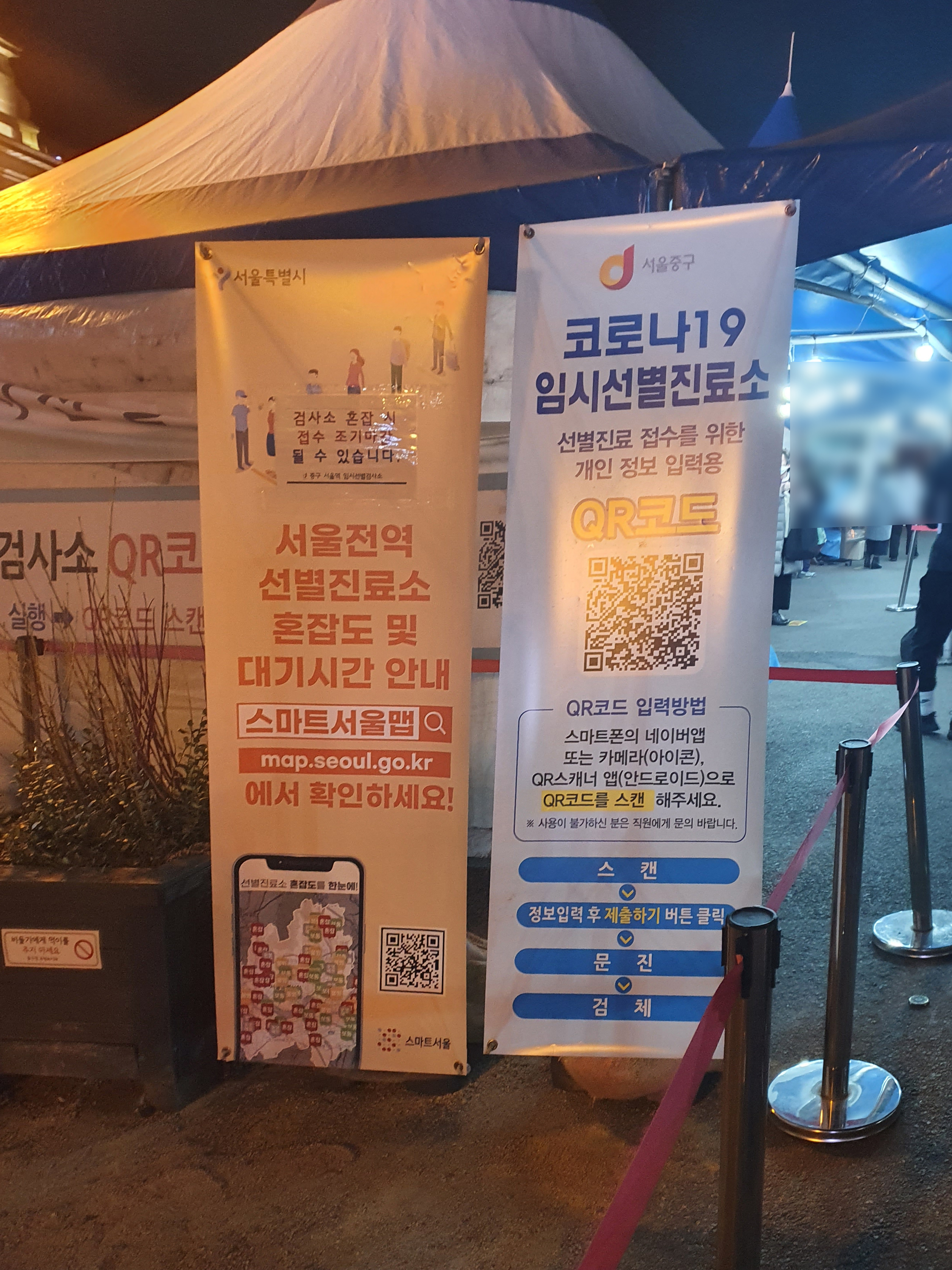 서울역에 도착해 선별진료소 (임시선별검사소)로 갔습니다. 근데 여기도 줄이 엄청 기네요.
