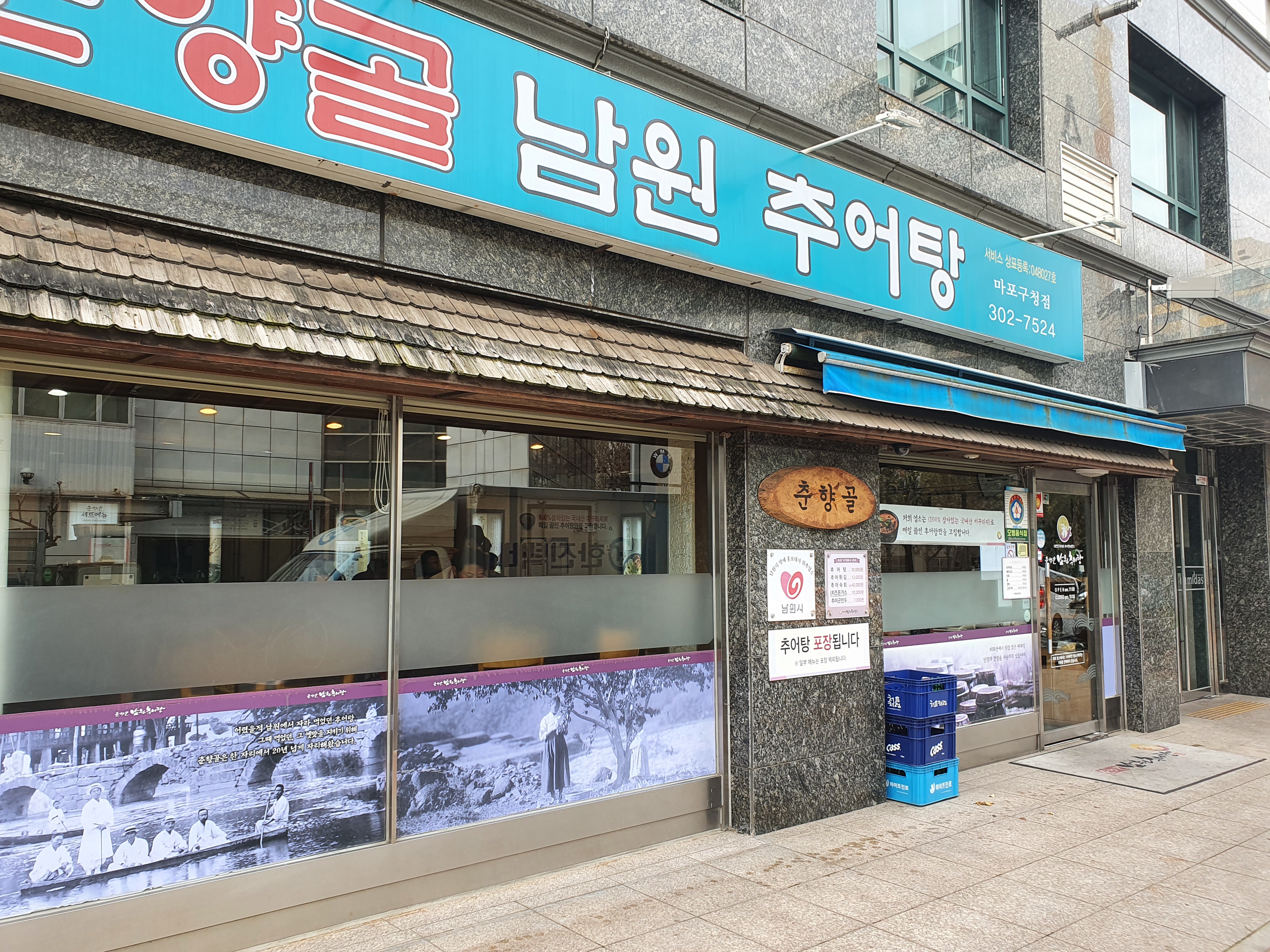 마포구청 맛집 춘향골 남원 추어탕은 위에 사진과 같습니다. 주차장은 가게 왼쪽에 지하로 내려가는 주차장을 이용하시면 됩니다. 주차를 하고 올라와서 가게 안으로 들어갔습니다.