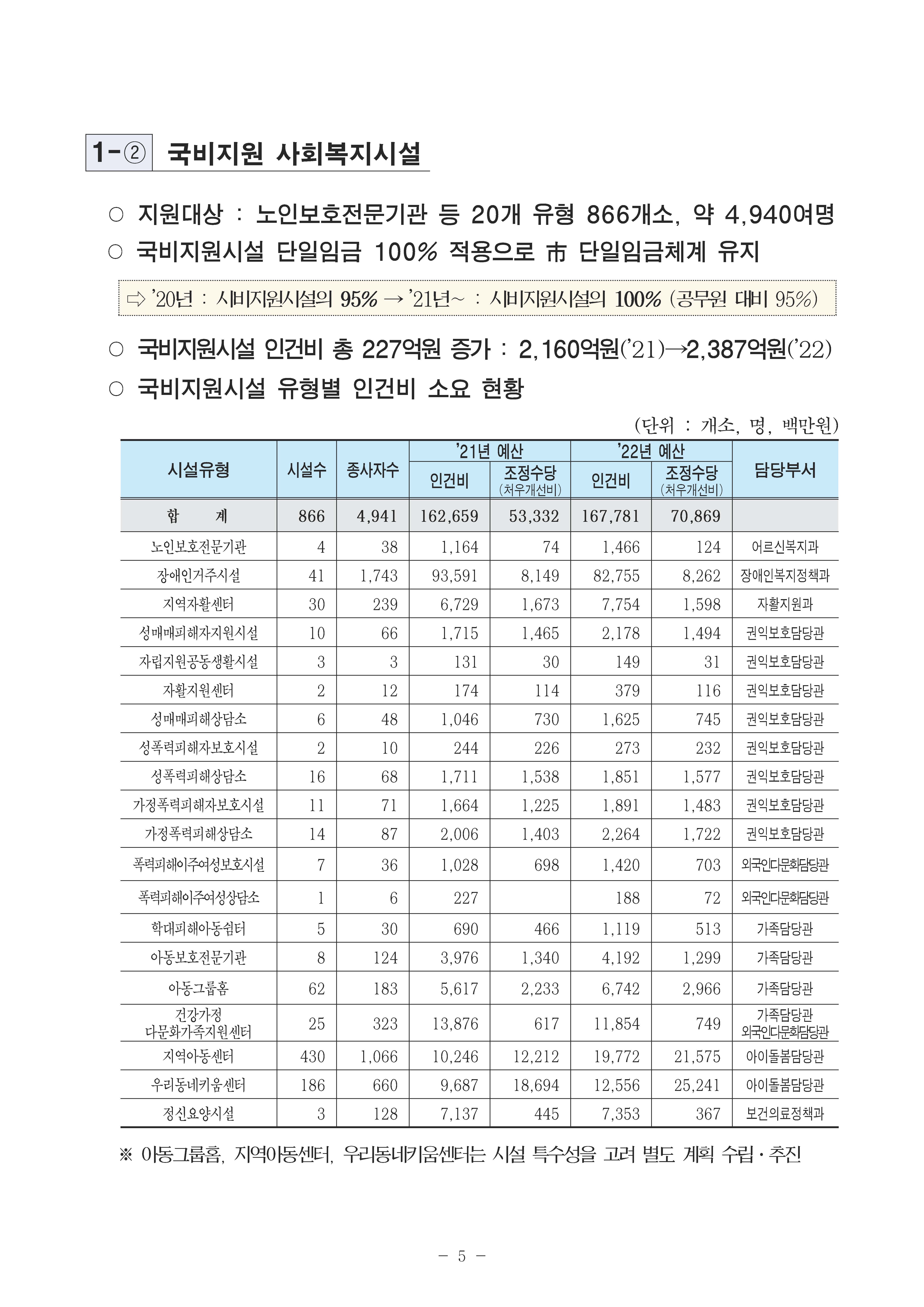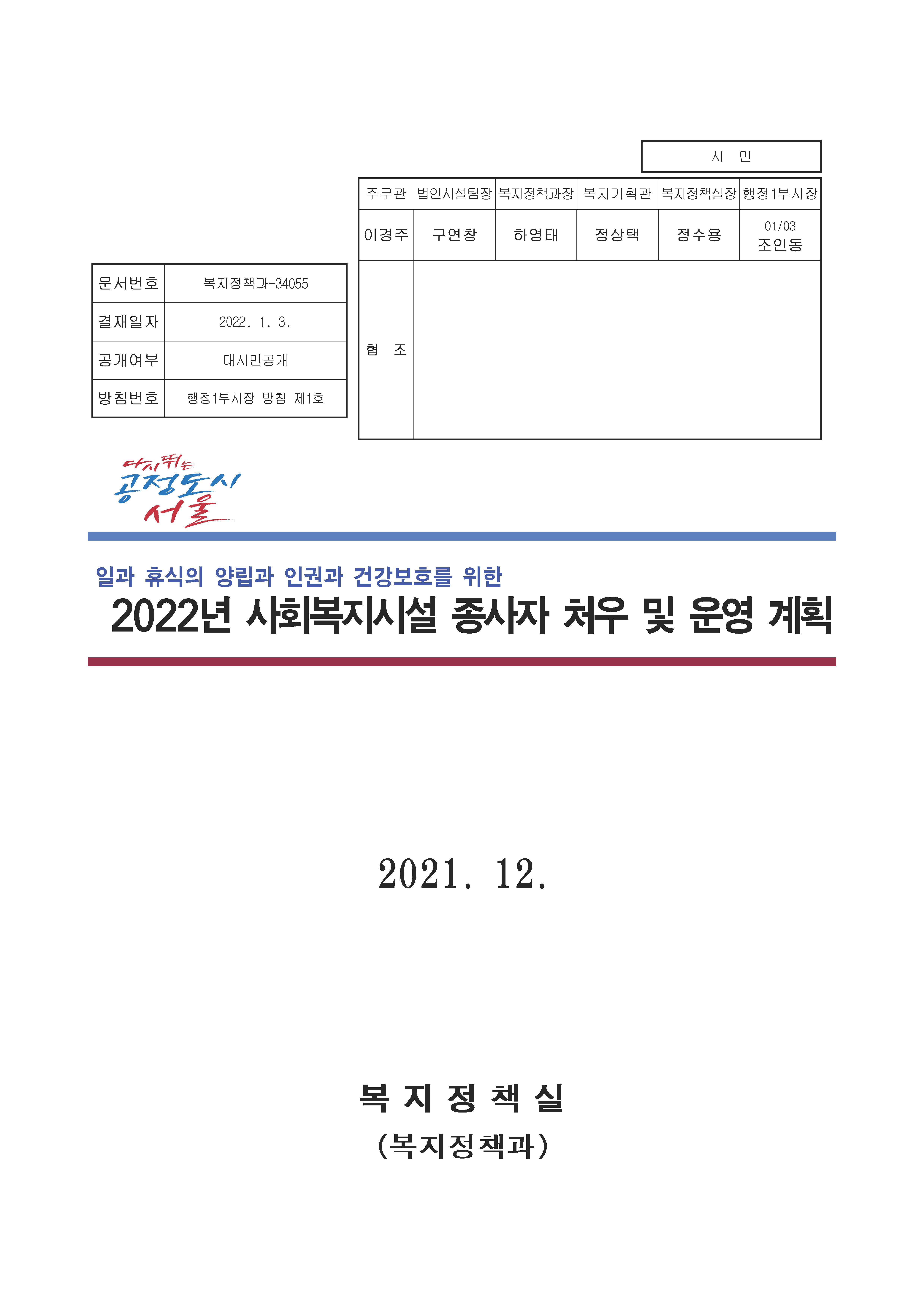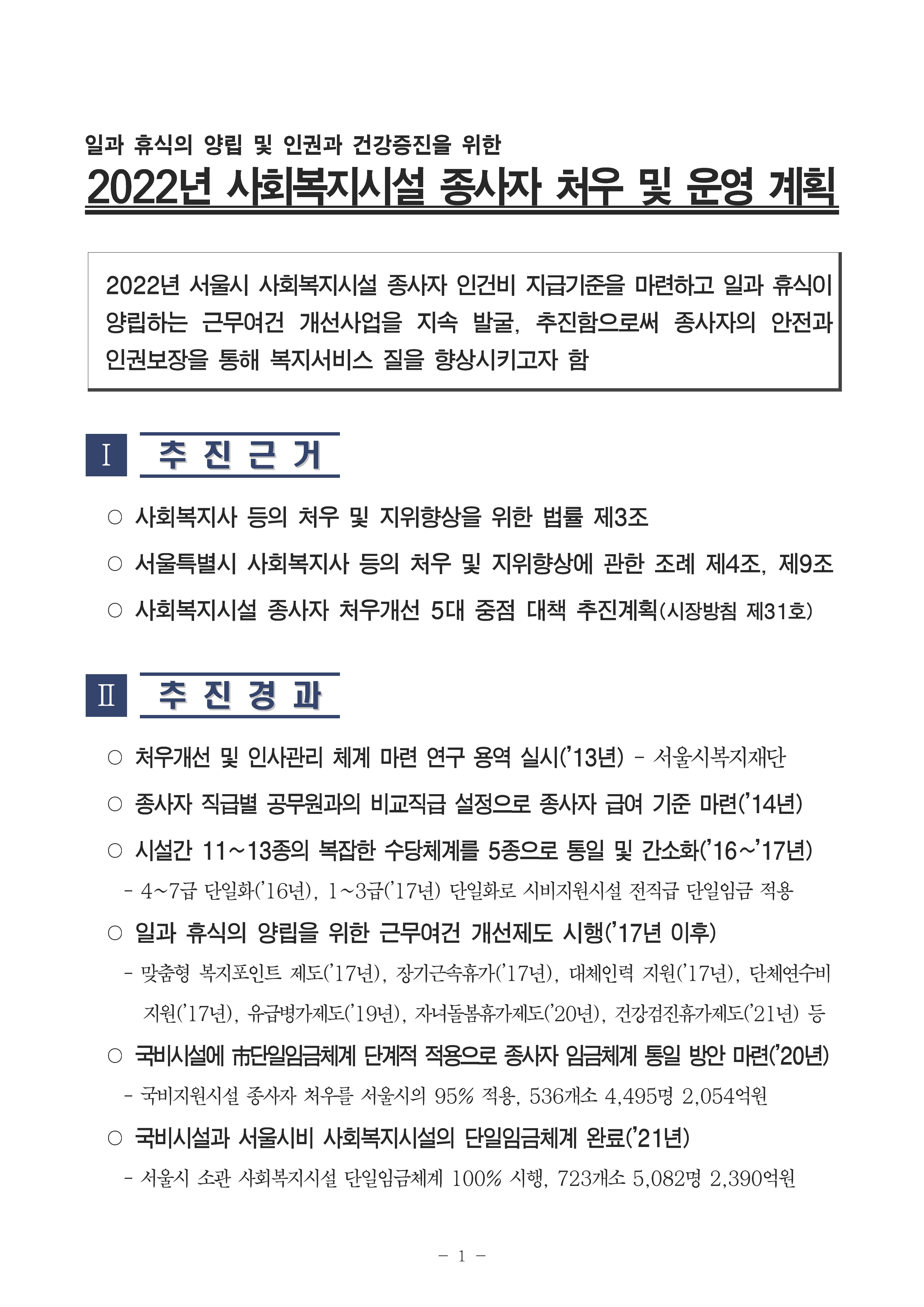 1. 2022년 사회복지시설 종사자 처우 및 운영 계획
