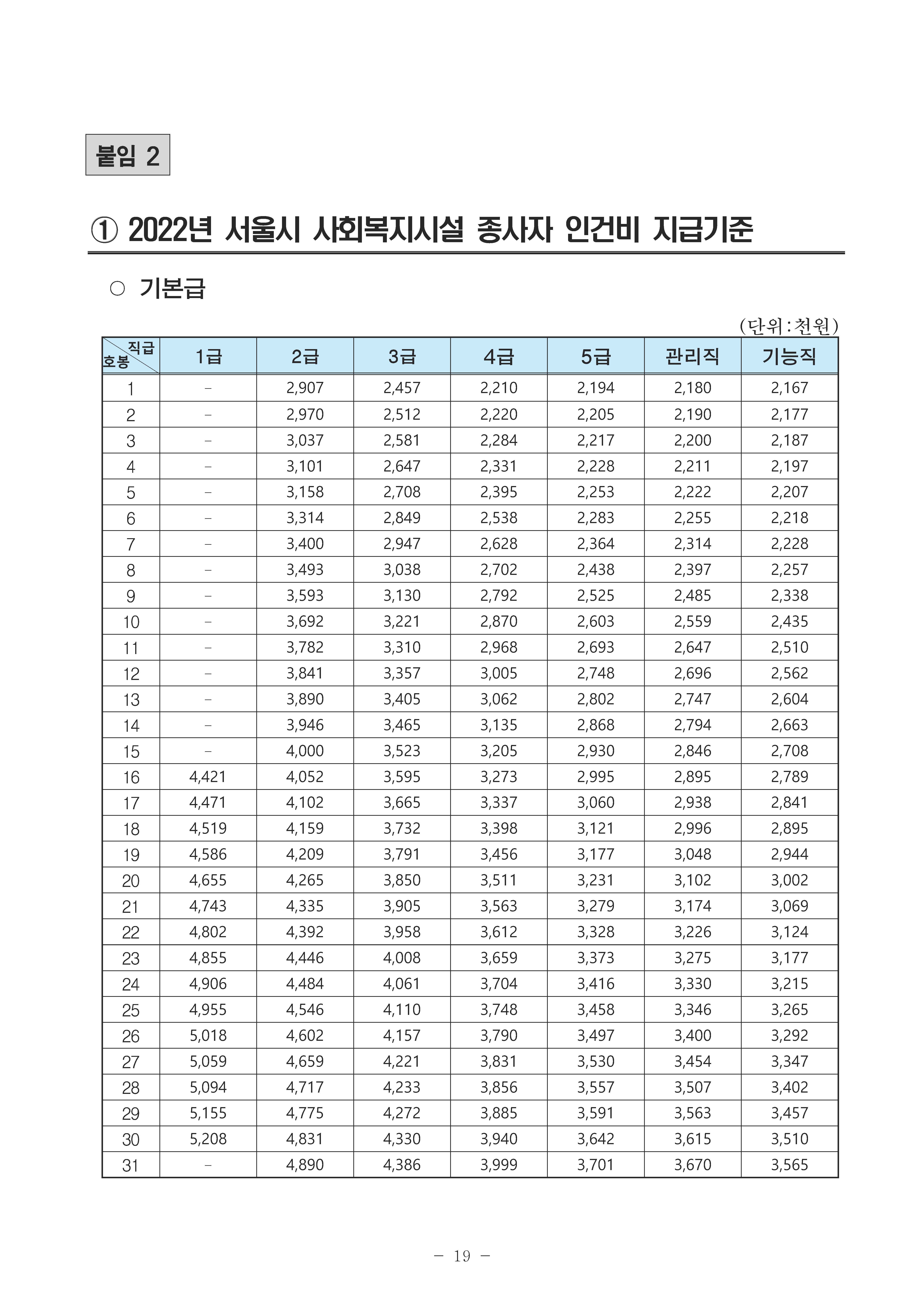 | 2021년 서울시 사회복지시설 종사자 인건비 지급기준 기본급 호봉표 + 수당 지급기준 (0) | 2021.12.03 |