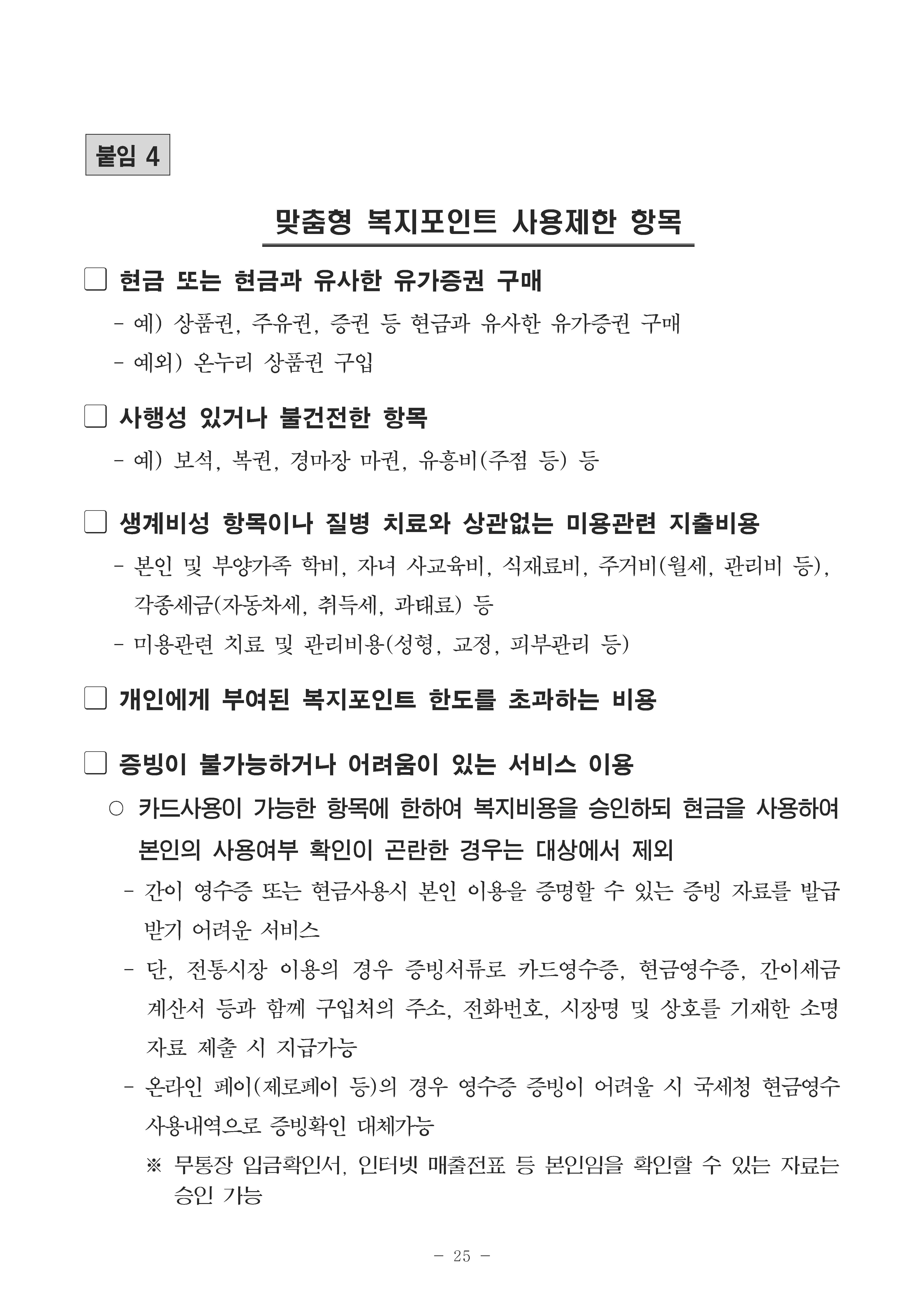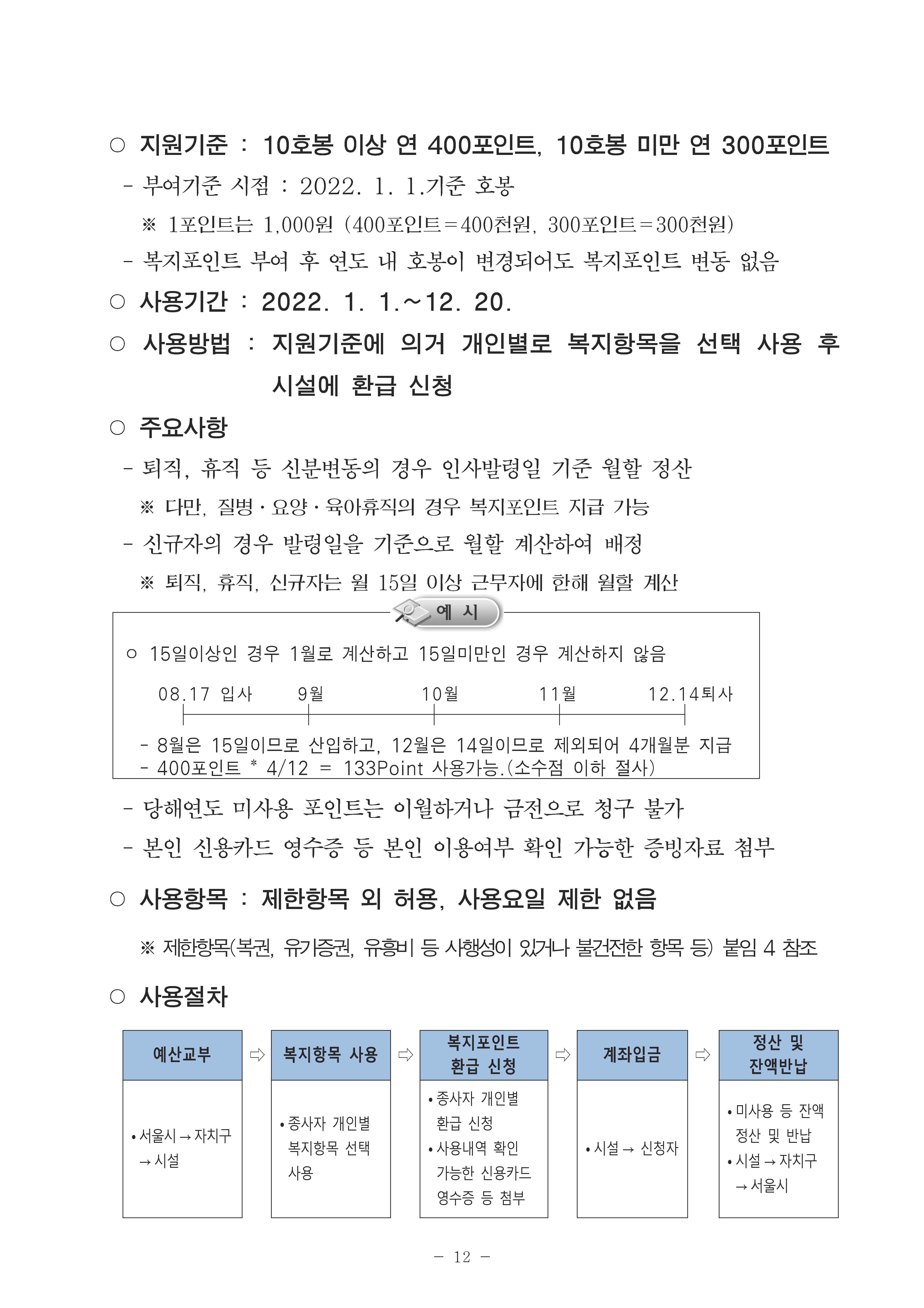 4. 보조사업 전담 수행인력으로 채용된 비정규직 종사자 복지포인트 신설 지급 (과별 고지예정)