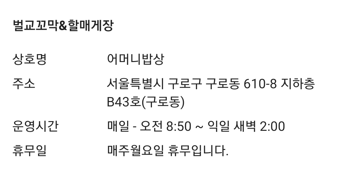 구로동 구로역 맛집 벌교꼬막&할매게장 (어머니밥상) 가게 정보는 위에 내용과 같습니다.