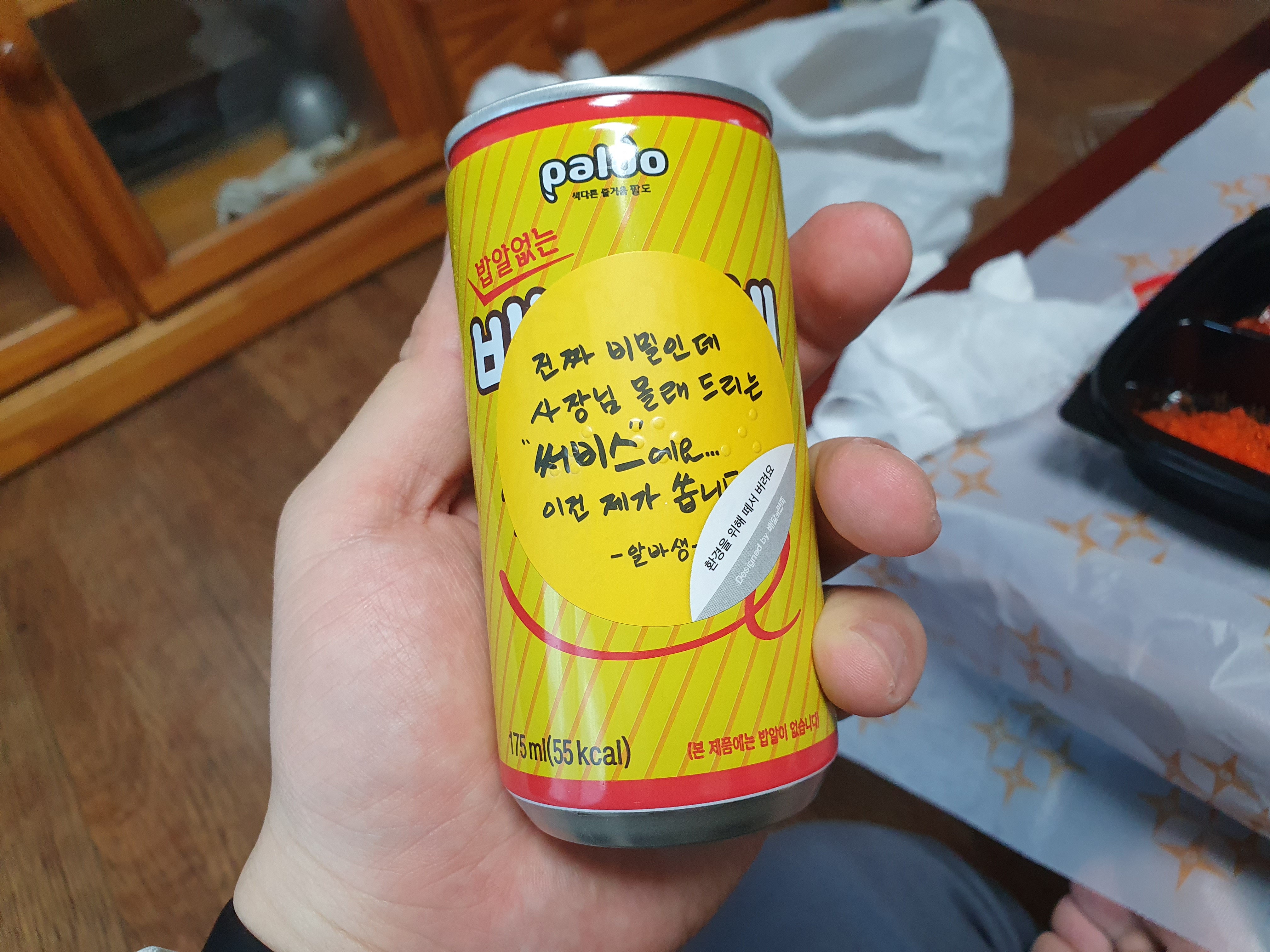 비락식혜에는 스티커가 하나 붙어 있었습니다.