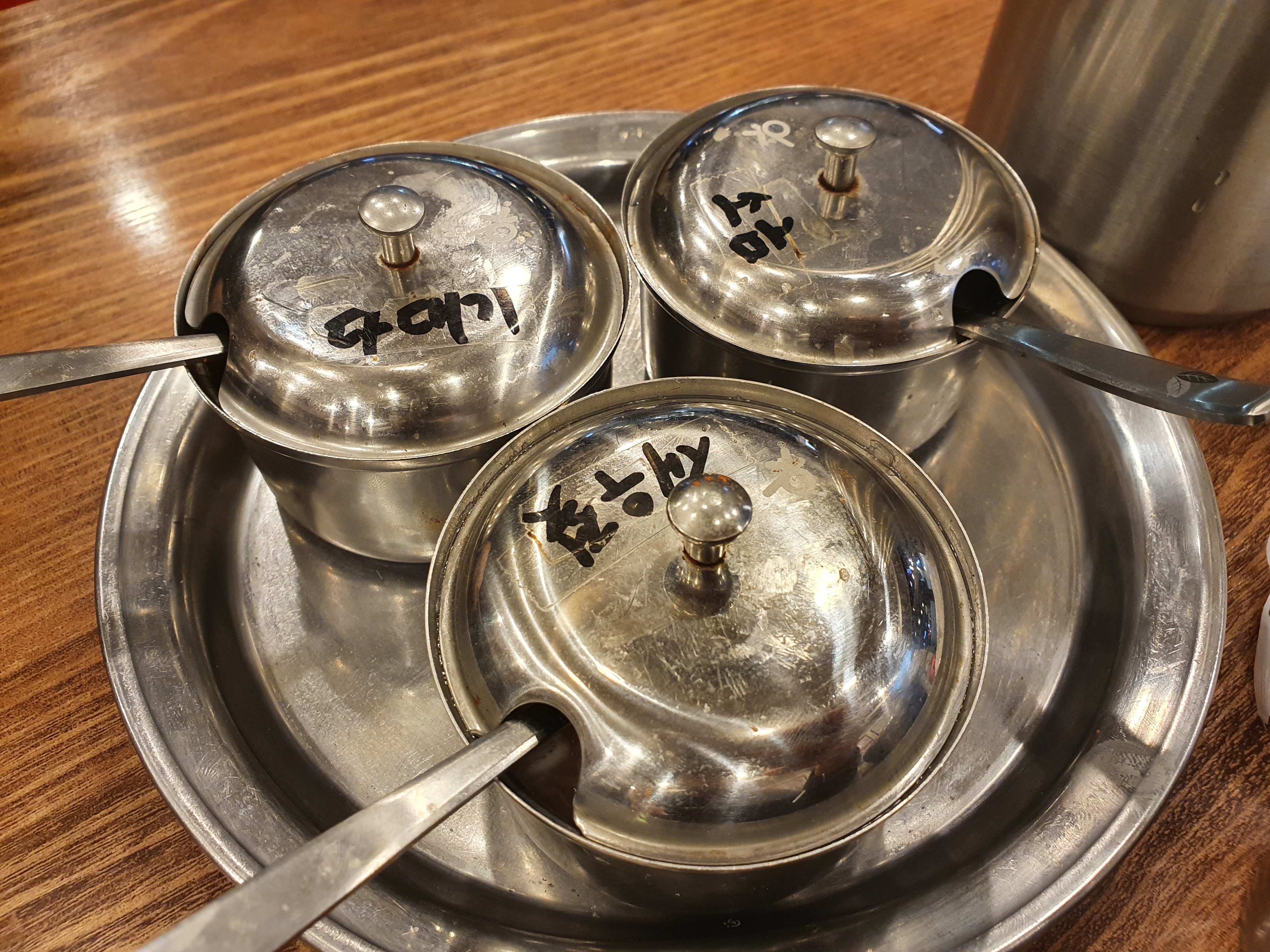 다대기와 소금 새우젓은 위에 사진과 같이 나오는데 개인 취향에 맞게 넣으면 됩니다. 저는 개인적으로 뜨거운 것을 잘 못 먹어요... 성격이 급하다보니 뜨거운거 먹으면 입천장이 난리가나거등요 ㅠㅜ 그래서 개인적으로 하는 방법 한번 밑에 적어보았습니다. 정답은 아니니 참고하세요.