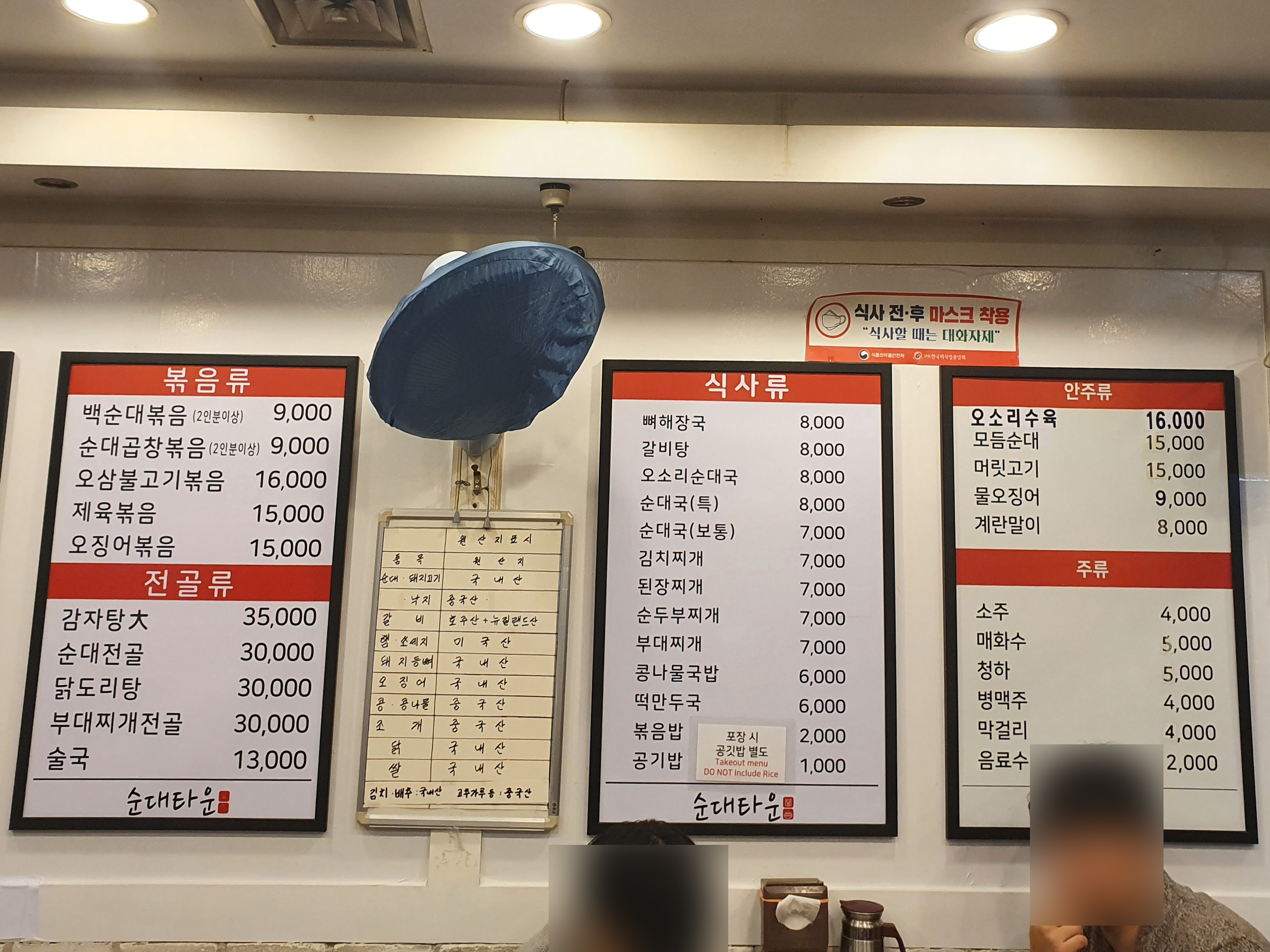 : 순대타운 - 순대국 (메뉴판 / 가격표 포함)