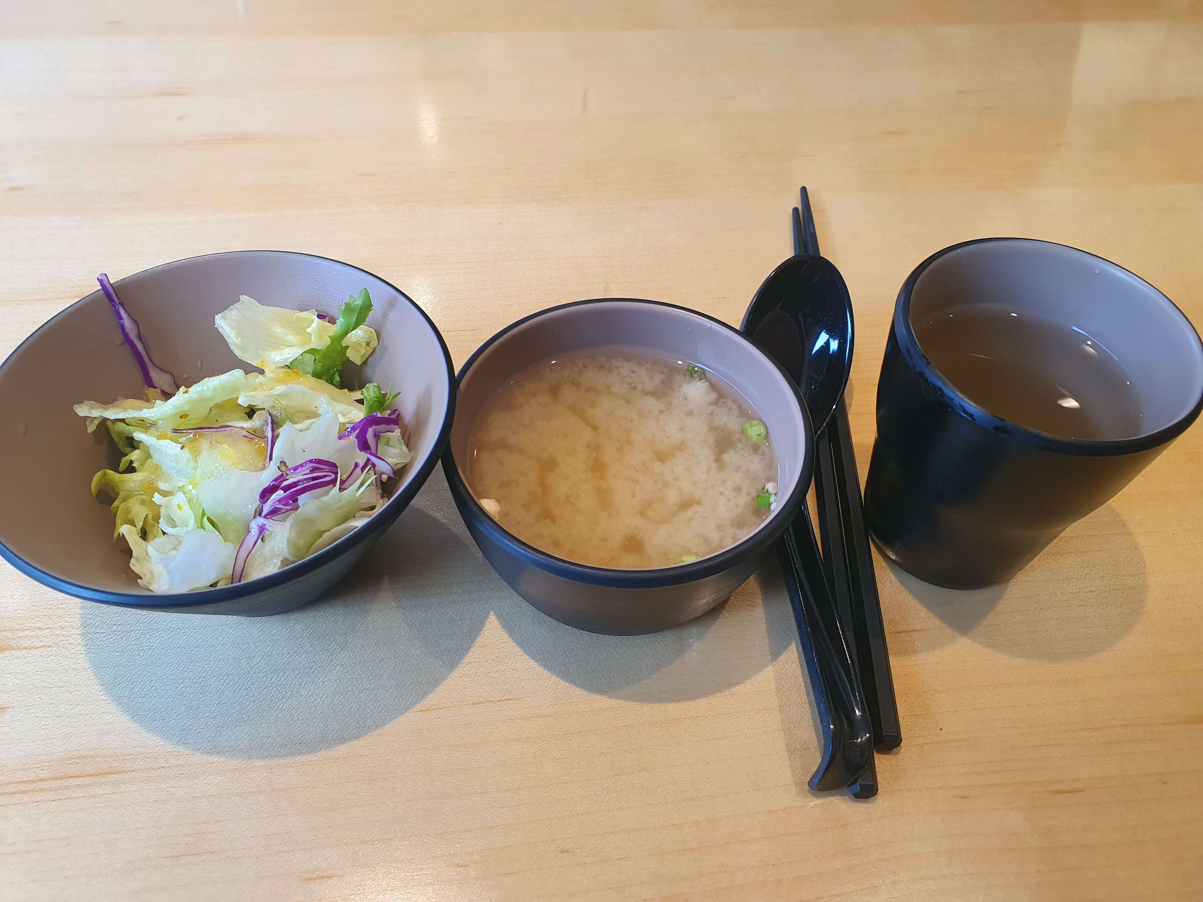 샐러드와 미소국이 나왔고 물은 따뜻한 물이 나왔는데... 개인적으로 찬 물을 좋아해서 찬물을 요청해 저는 찬 물을 마셨습니다. 찬물하니 갑자기 생각난건데... 냉수 먹고 속차려? ... 미안합니다.