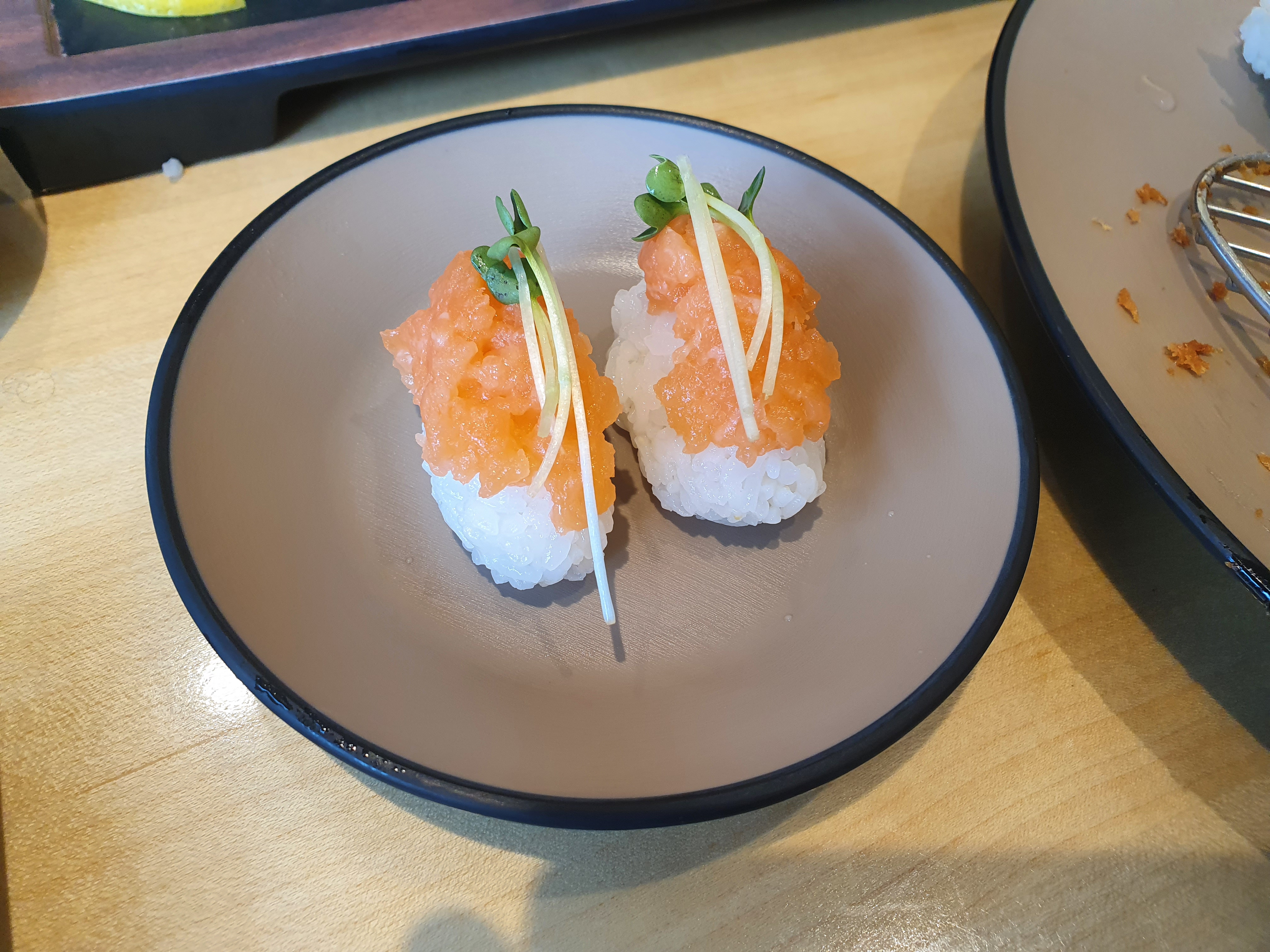 위에 사진에 보이는 초밥은 하나씩 서비스로 나온 것입니다. 연어 다닌 것인가..? 하는 생각이 들었고 따로 확인은 하지 않았어요~