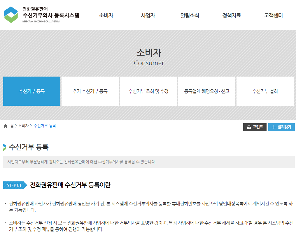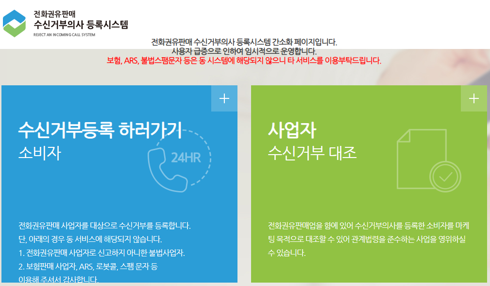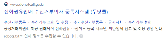https://www.donotcall.go.kr (그외 판매전화 수신거부, 무료)