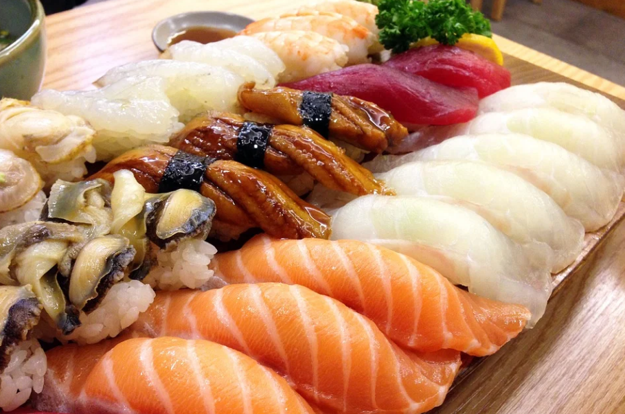 2. 점심 식사로 초밥을 맛있게 먹었습니다.