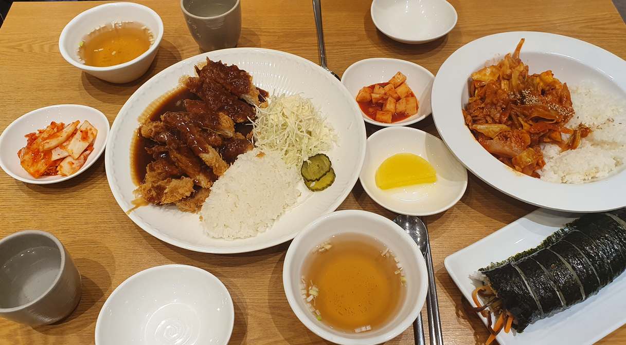 3. 돈까스, 제육덮밥, 멸치김밥을 먹었습니다.