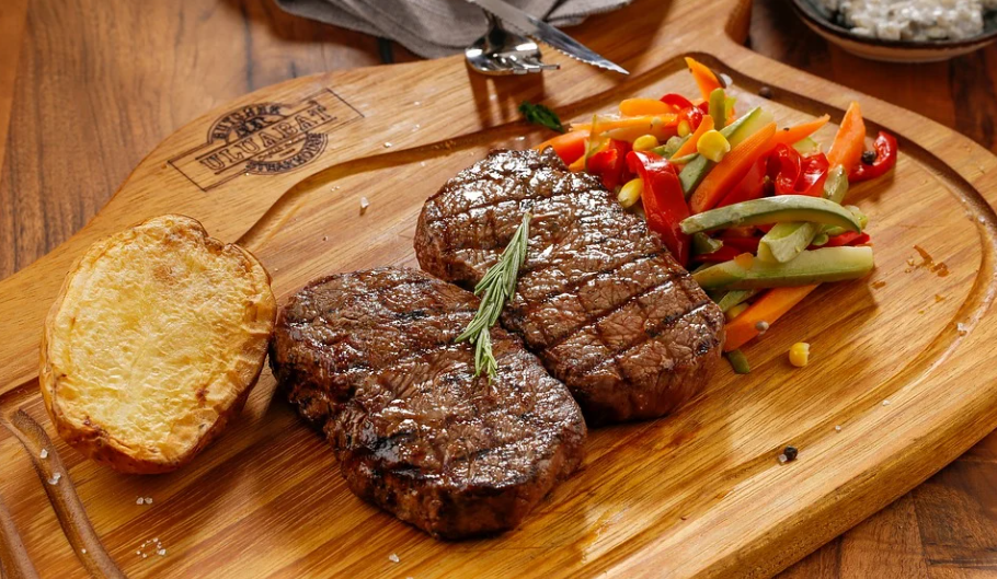 1. 아침에 스테이크와 샌드위치를 먹었습니다.