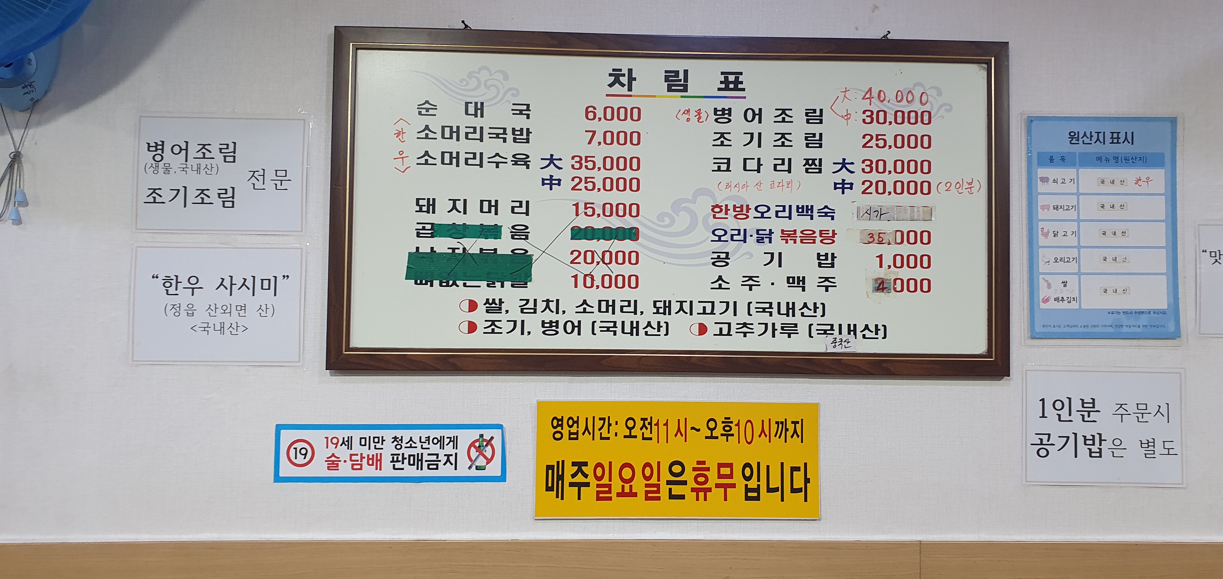 옆 테이블에서는 아저씨들이 코다리찜을 먹고 계셨는데 한잔하시고 가게측과 티격태격하면서 '맛 있어서 또 오네 맛 없어지면 안 온다'라고 말씀하시는 것을 보고 기대치가 올라겠습니다.
