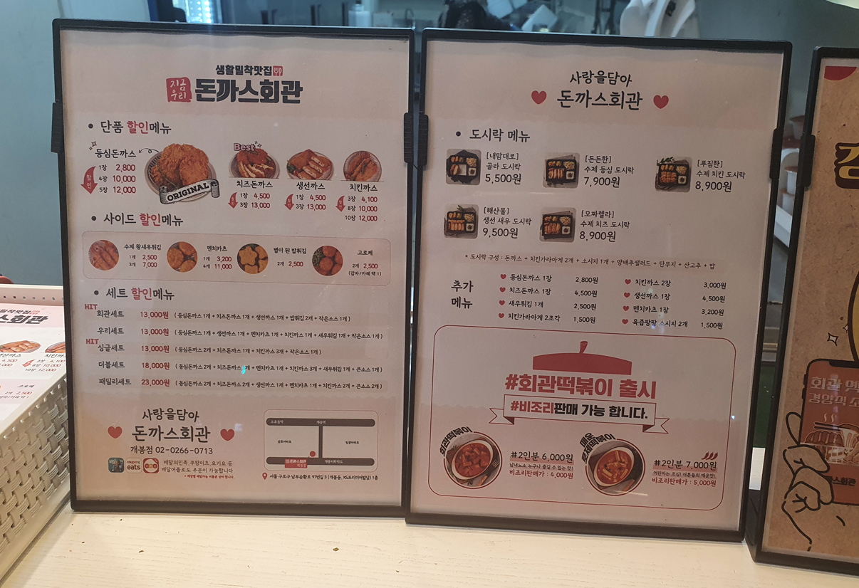 위에 사진은 돈까스회관의 메뉴판입니다. 필요하신 분 보세요~