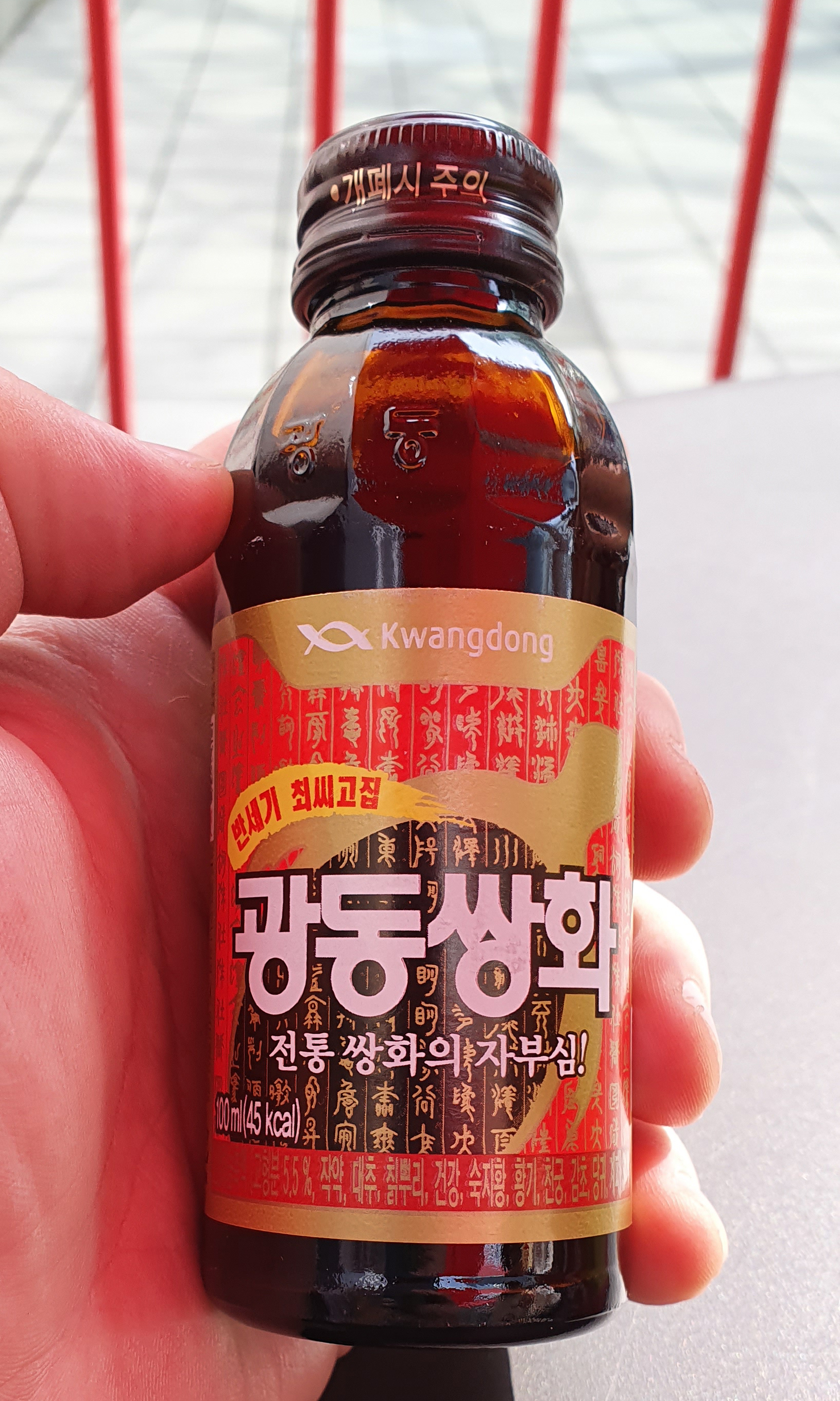 쌍화밀크티를 주문했고 쌍화밀크티가 나왔습니다. 사진에서는 쌍화밀크티 뚜껑 연 것, 뚜껑 닫은 것, 광동쌍화 1병인데 실제로는 2병이 나왔습니다. 지금 와서 생각해보니 쌍화스무디도 아닌데 한 병을 줬네요.