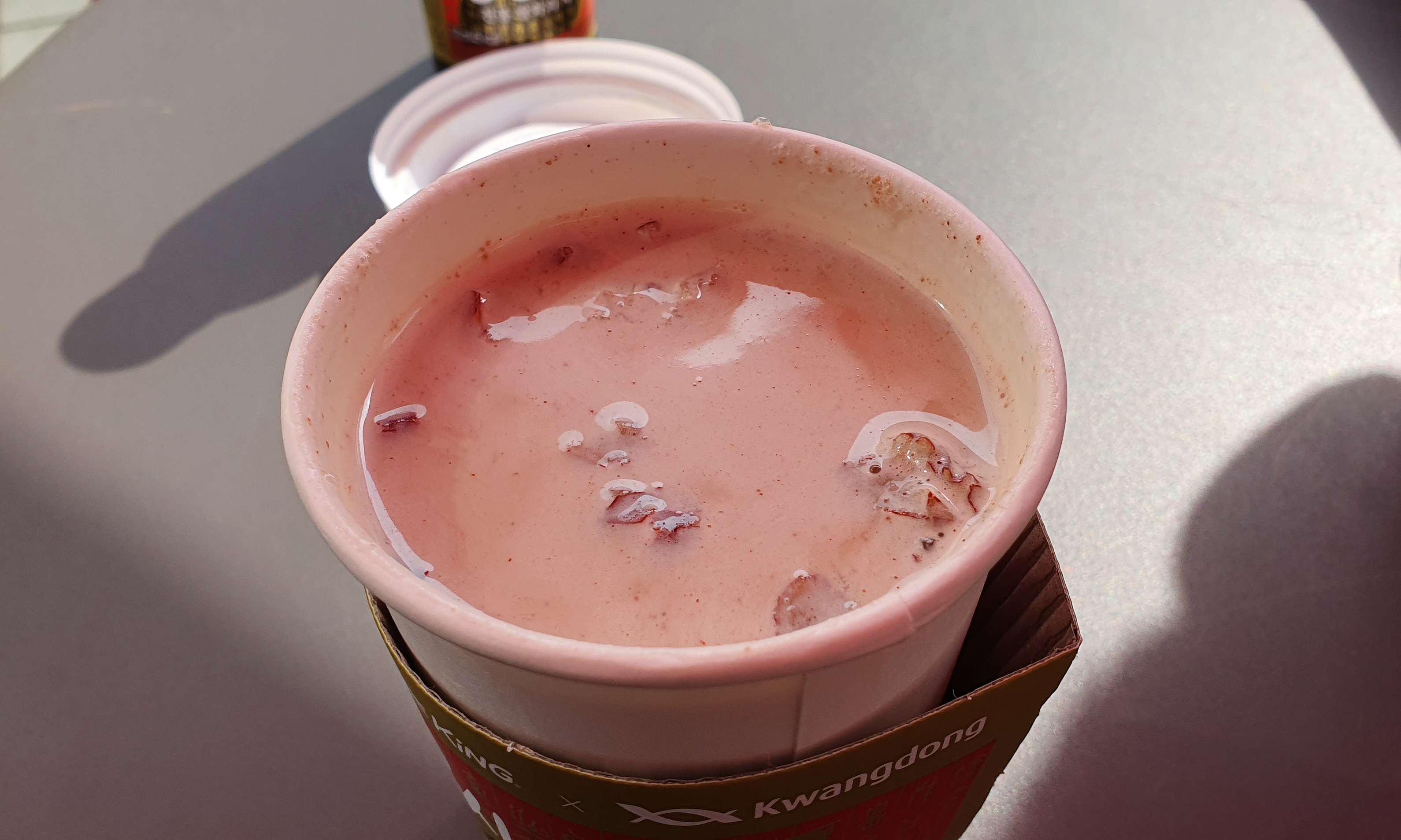 어느 정도 먹었길래 광동쌍화 병을 열어 쌍화밀크티에 부었습니다. 그리고 빨대로 섞어서 마셔보니... 안 섞은 게 더 맛있네요 ㅋㅋㅋㅋ 쌍화밀크티와 광동쌍화는 따로 먹어요~ 스무디킹과 쌍화탕이 의외로 잘 어울려서 신기하고 종종 먹을 것 같네요. 건강해지는 느낌이 든달까... 어른들도 좋아할 맛입니다.