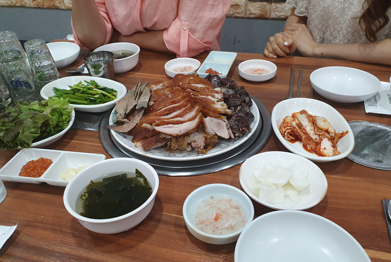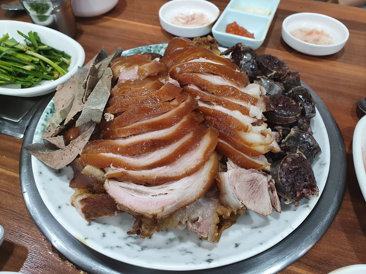 짠! 영양족발 앞발이 나왔습니다. 발이라고 하니 조금 이상해서 다리라고 할게요 ㅋㅋㅋ 보들이 족발에서는 다른 족발집과 다르게 간과 순대가 같이 나왔습니다. 이렇게 나온 것에 좋은 점은 한정된 족발의 부족한 양을 더 채워줄 수 있고, 족발 외의 다른 음식을 한꺼번에 먹을 수 있다는 것입니다^^