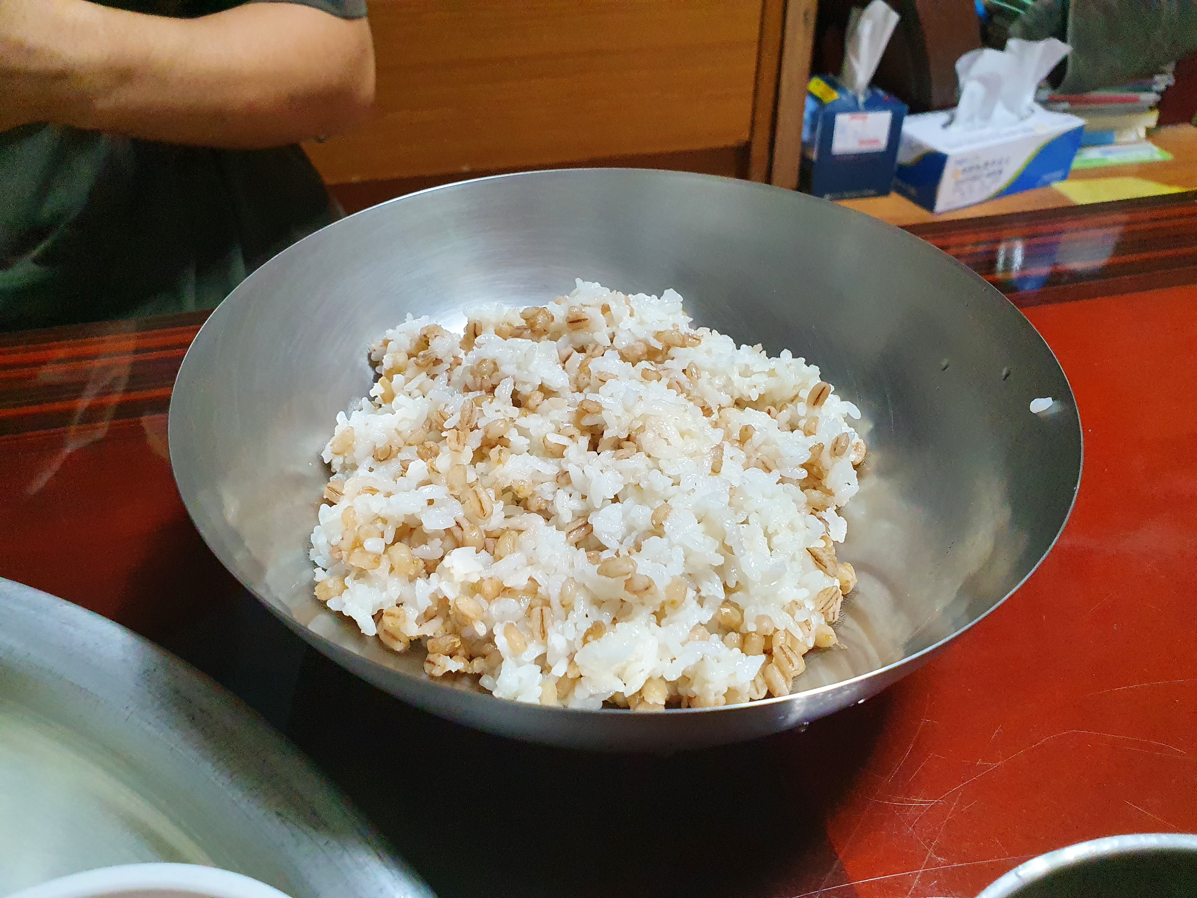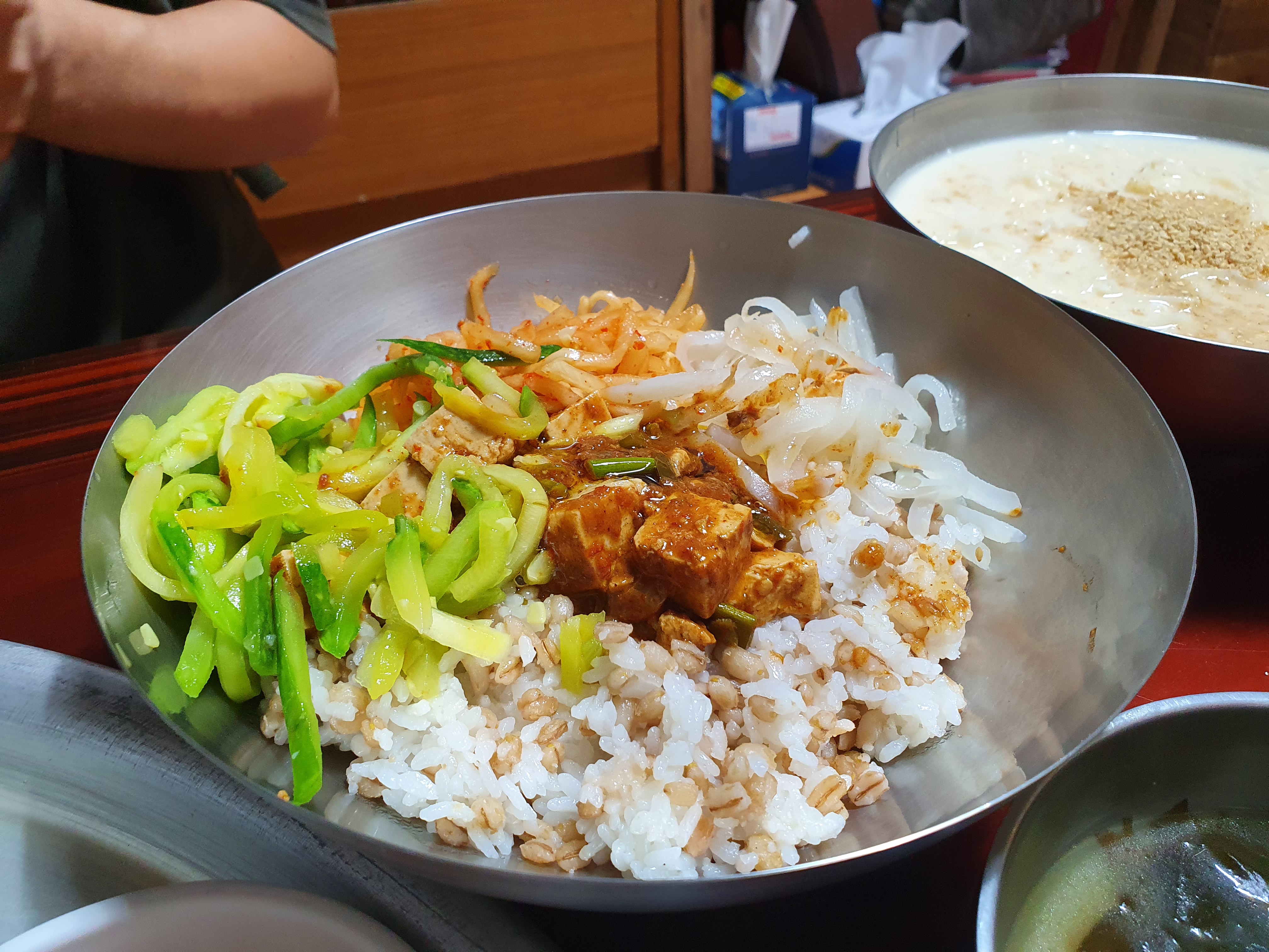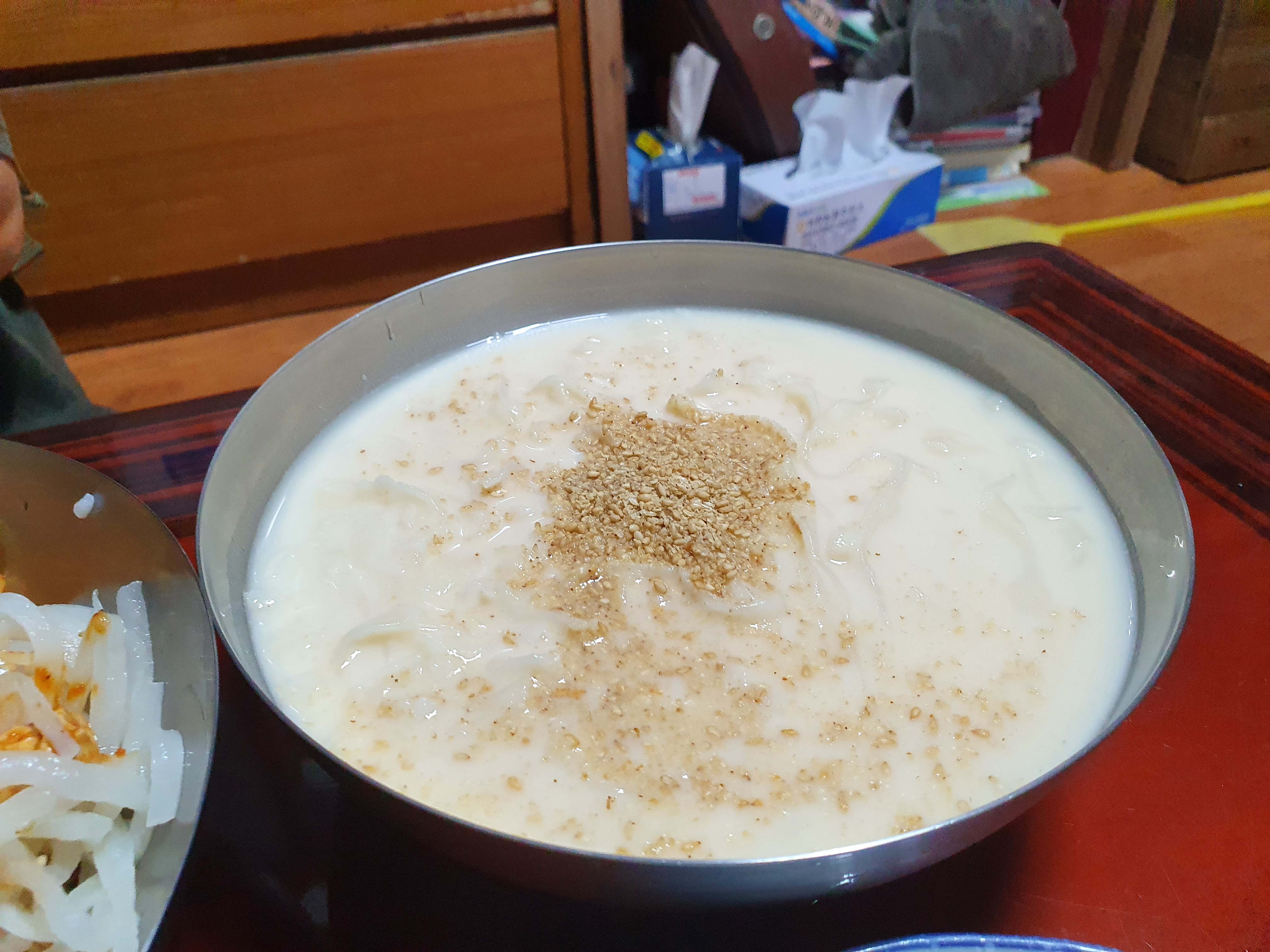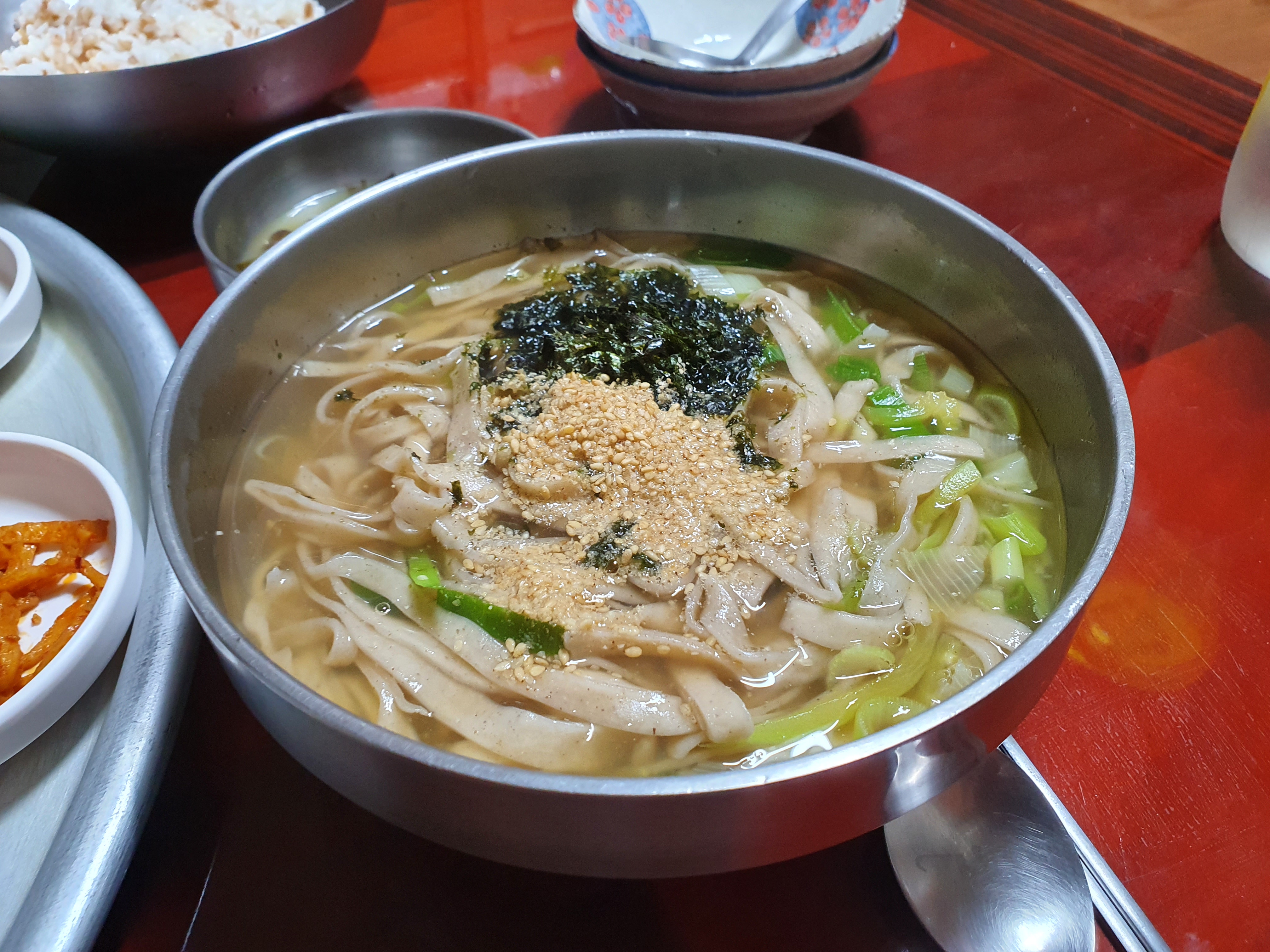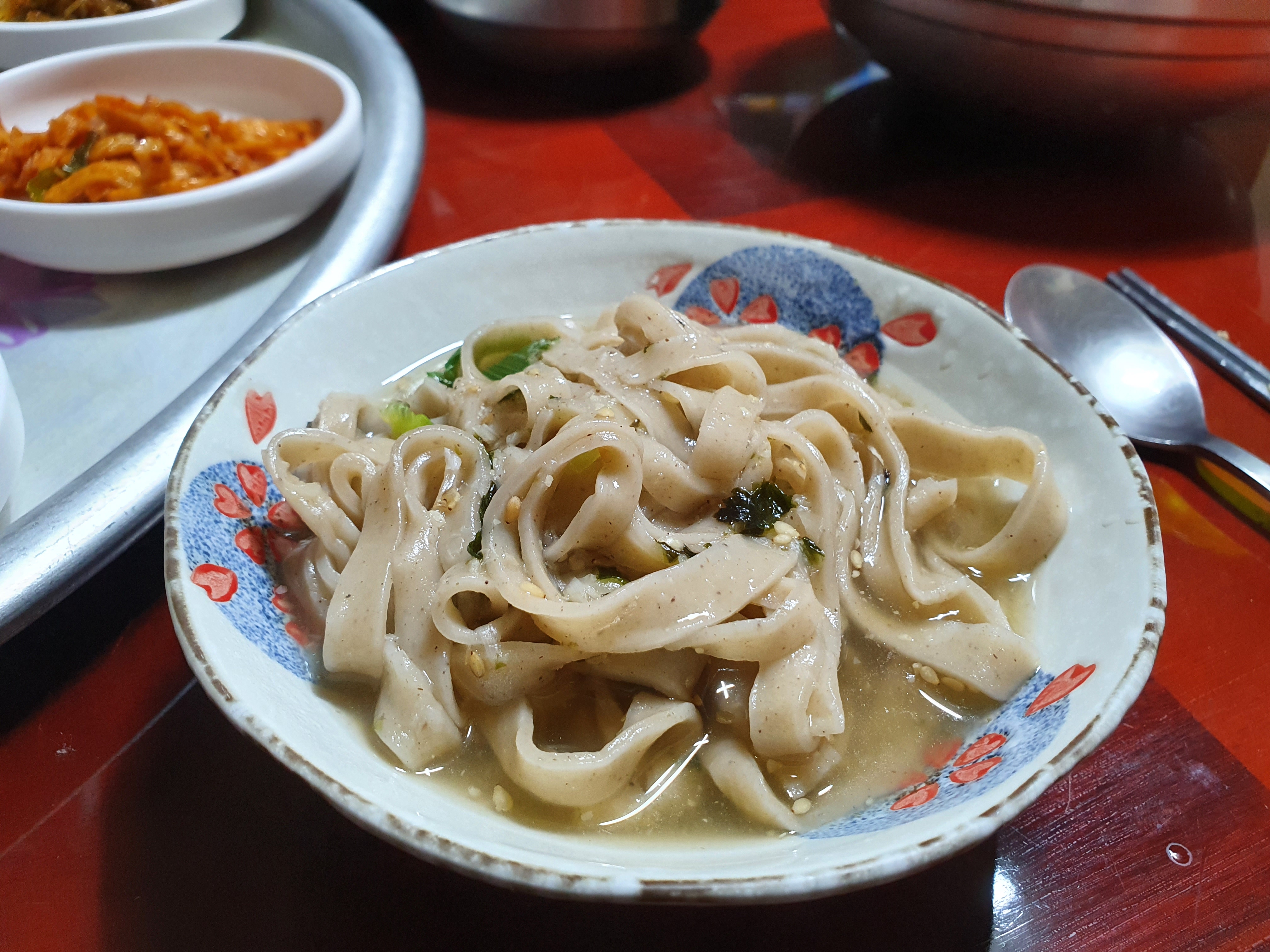 저와 친구가 앉은 곳은 사장님의 방에 상을 놓은 것 같았어요. 밖에는 테이블에 의자가 있는 자리도 있었어요. 친구와 앉아서 음식이 나오기를 기다리며 한 말 중에 하나는... "시골 할머니네 놀러온 것 같아" 입니다.