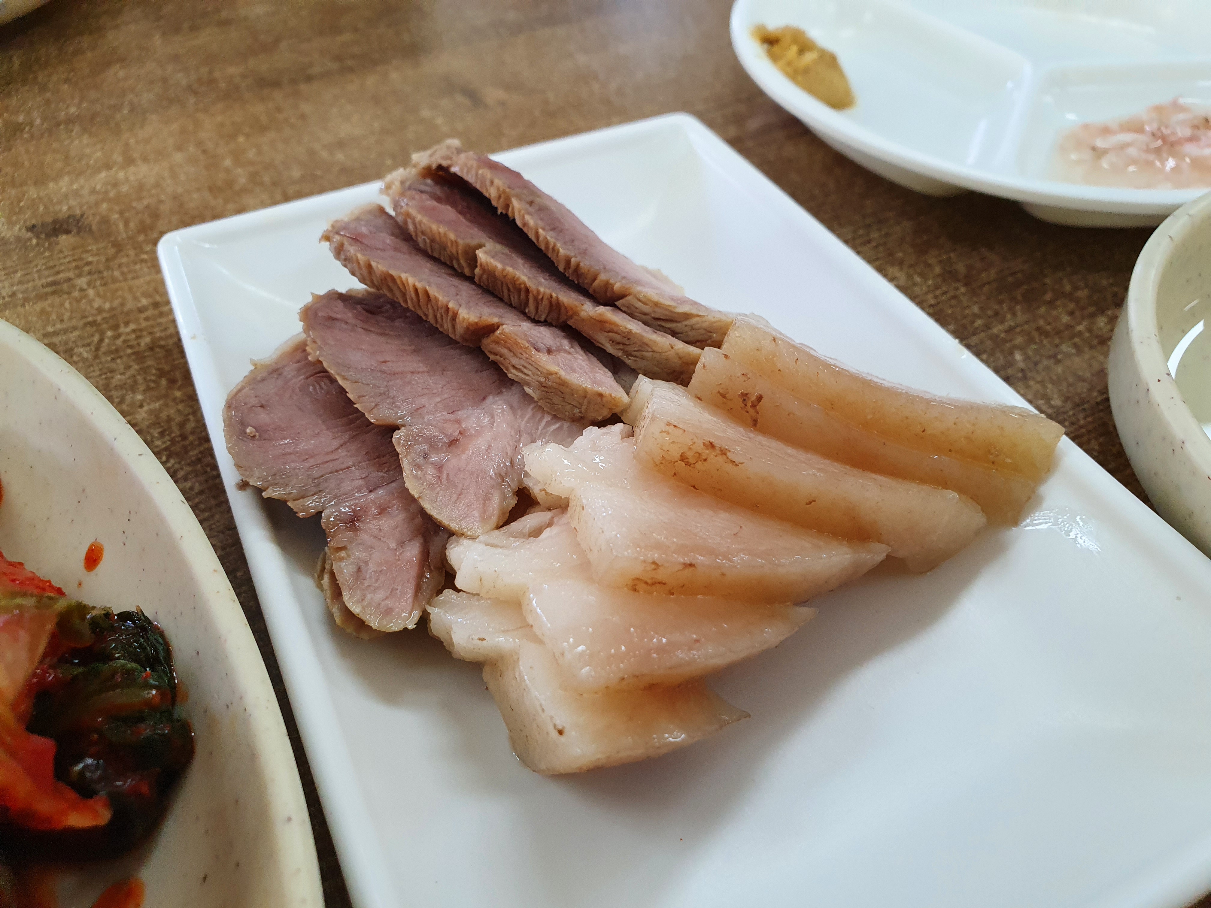 주문하고 친구랑 이야기하며 기다리고 있는데 수육과 반찬이 나왔습니다! 수육..?! 생각지도 못 하고 있어서 너무 반갑고 드라구요. 반갑다 친구야?!ㅋㅋㅋㅋㅋ 수육을 김치와 싸서 먹는데 꿀맛이드라구요. 친구와 이야기를 나누면서 수육을 먹으면서 막국수가 나오기를 기다렸죠. 저와 친구는 일단 수육에 만족감이 올라갔습니다 ㅋㅋㅋㅋㅋㅋ