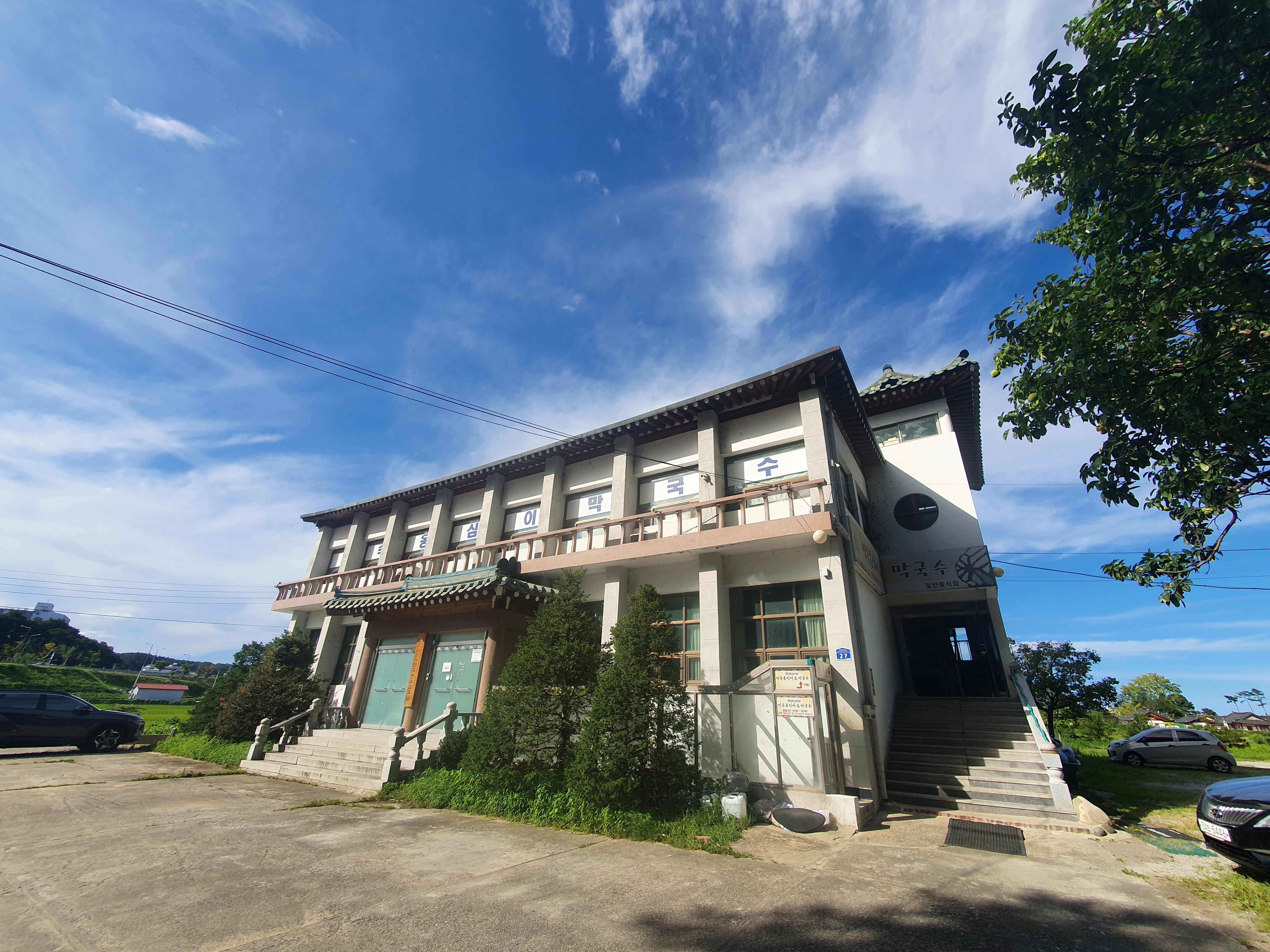 민속옹심이막국수의 외관을 멋지게 찍어보았습니다. 건물의 구도도 구도지만 구름이 살짝 있어서 더 멋진 것 같아요. 제가 찍은 사진 보면서 혼자 만족해 봅니다.ㅋㅋㅋㅋㅋ 일단 안으로 들어갔습니다. 오른쪽에 보이는 계단을 이용해 2층으로 올라갔습니다. 참고로 브레이크타임이 있으니 피해서 가도록하세요^^