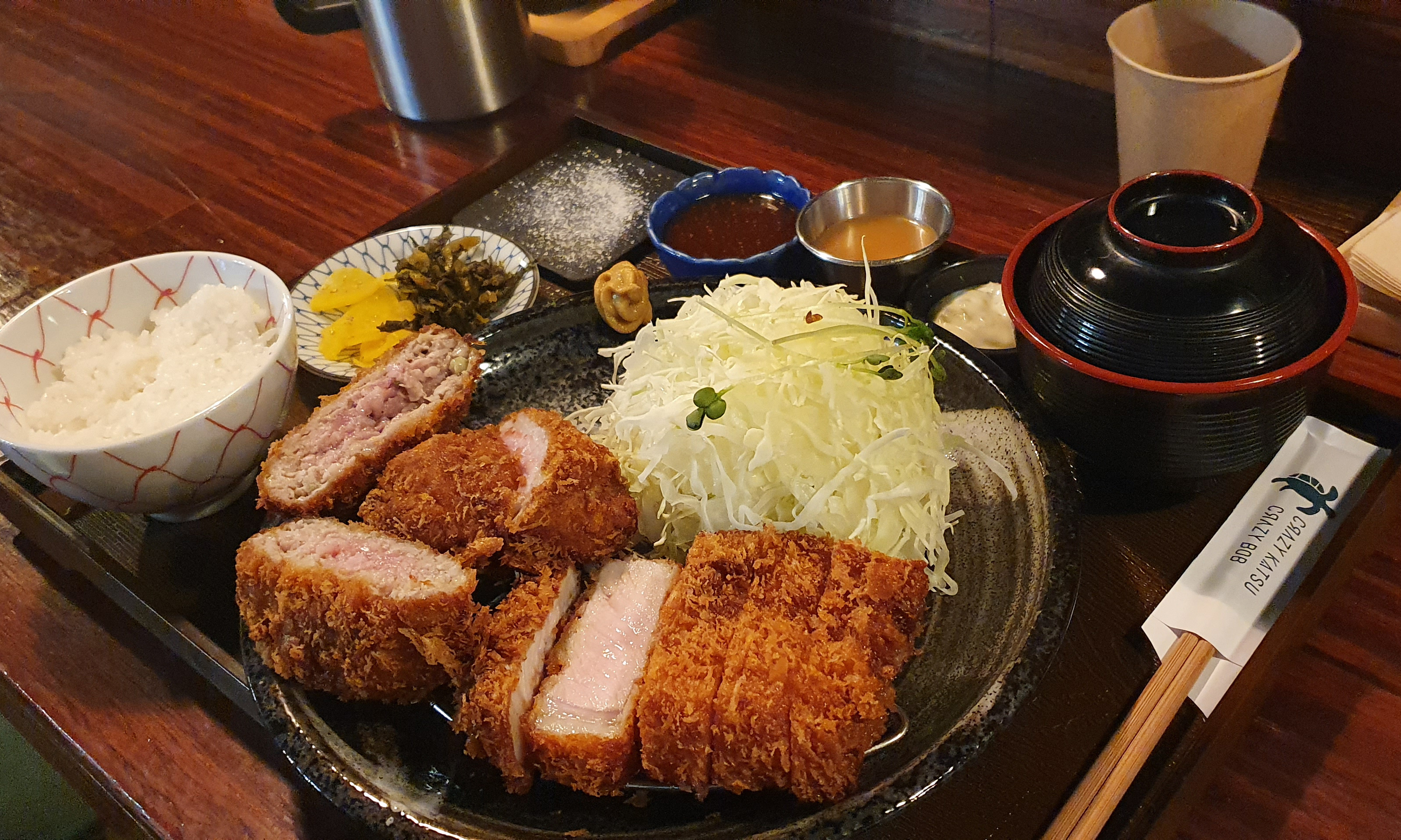 이날 특로스카츠가 한정수량이 하나 남은 이유도 있었고 다른 카츠도 먹어보고 싶어서 모둠 정식 하나, 특로스카츠 정식(당일 한정수량) 하나 주문했습니다.