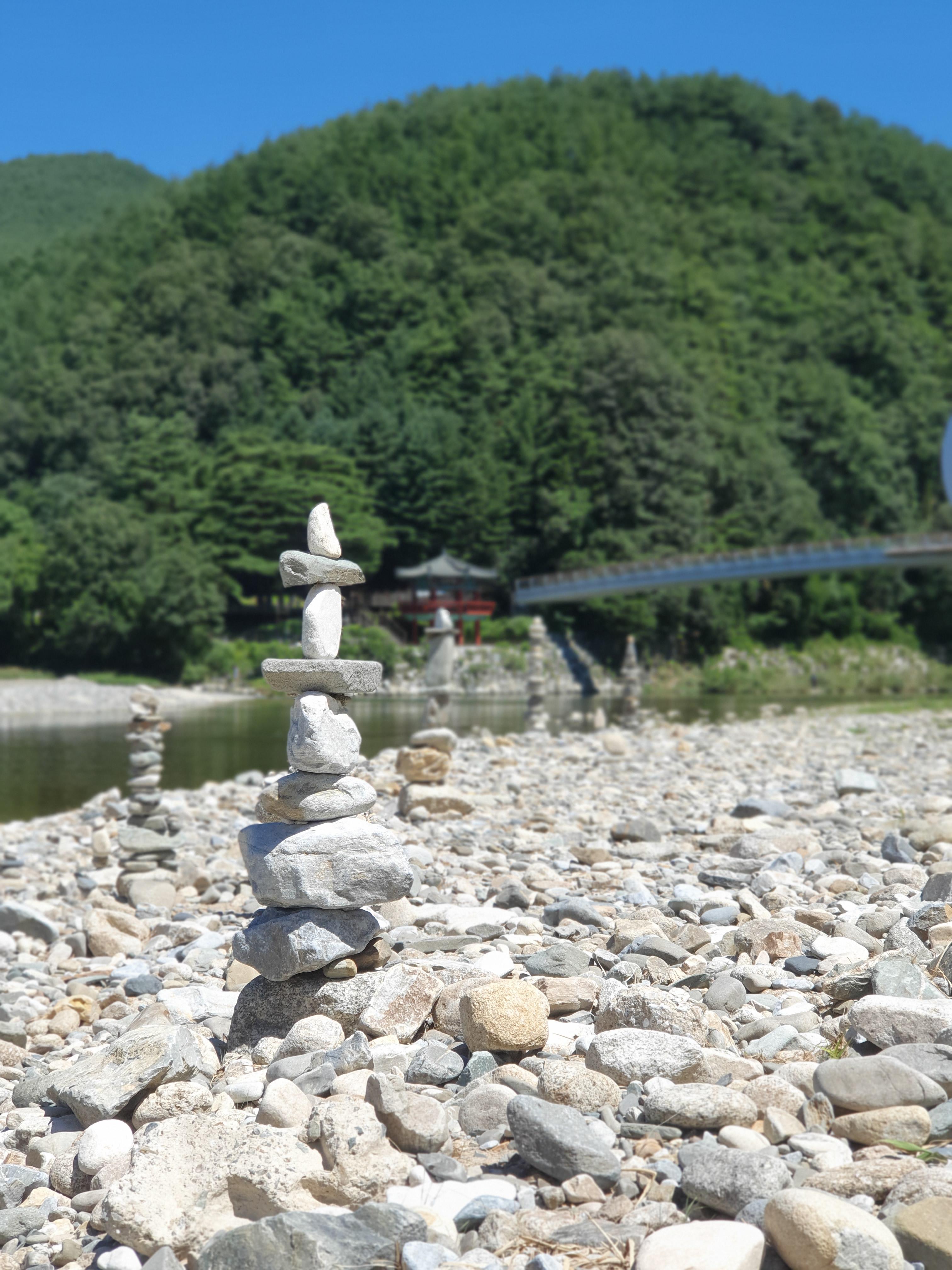 돌탑이 멋있게 서 있어서 친구과 같이 하나 세워보려고 했는데... 쉽지 않더라구요 ㅋㅋㅋㅋㅋ 강원도 정선 여행으로 강원도 정선 가볼만한 곳 아우라지, 아우라지 출렁다리, 아우라지 관광지에 한번 가서 돌탑 한 번 세워보세요~^^