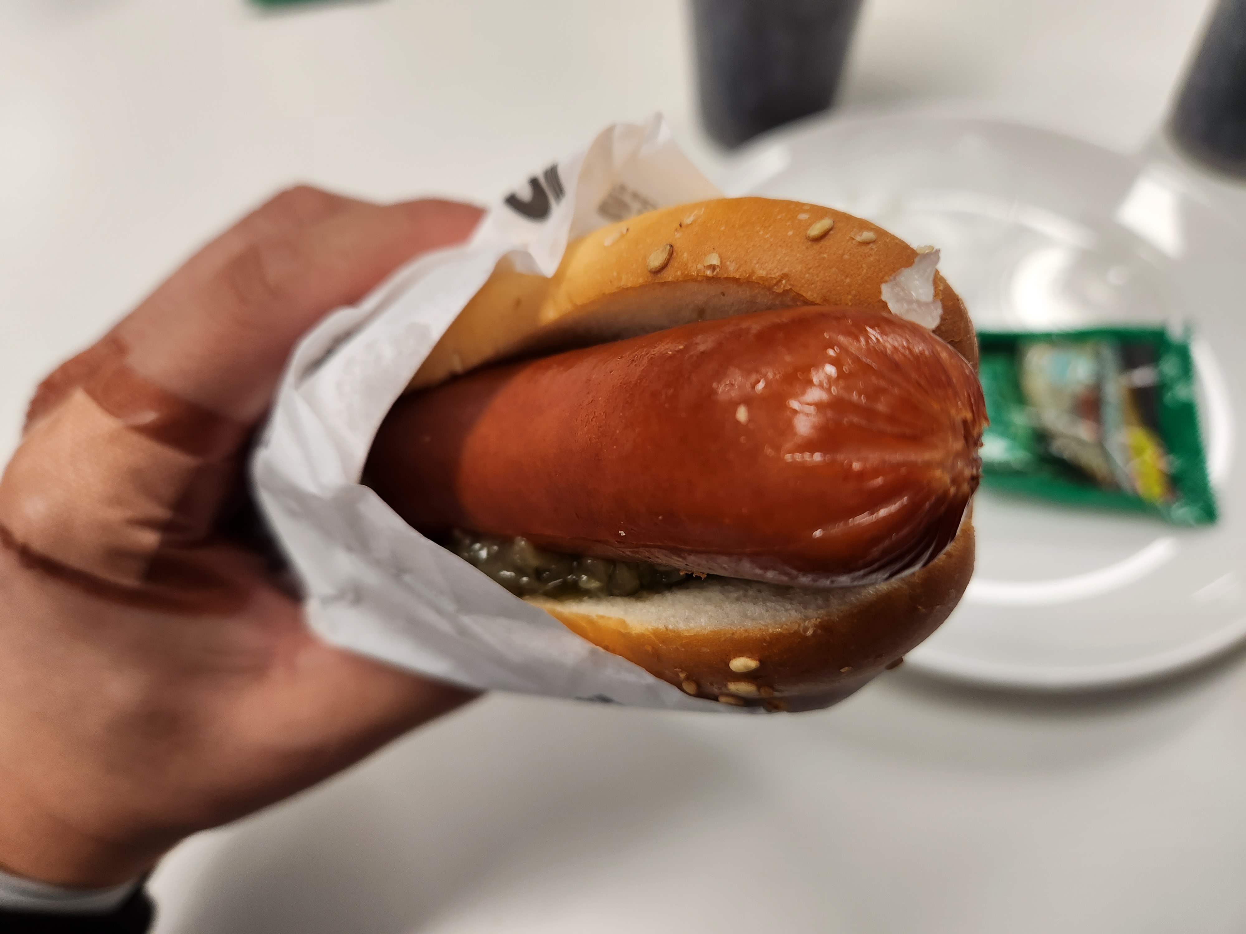 핫도그는 빵에 소시지가 껴있었고, 빵을 벌려 양파 다진거와 송송오이피클을 넣어주고.. 뭔가 조금 허전하네 싶은데..