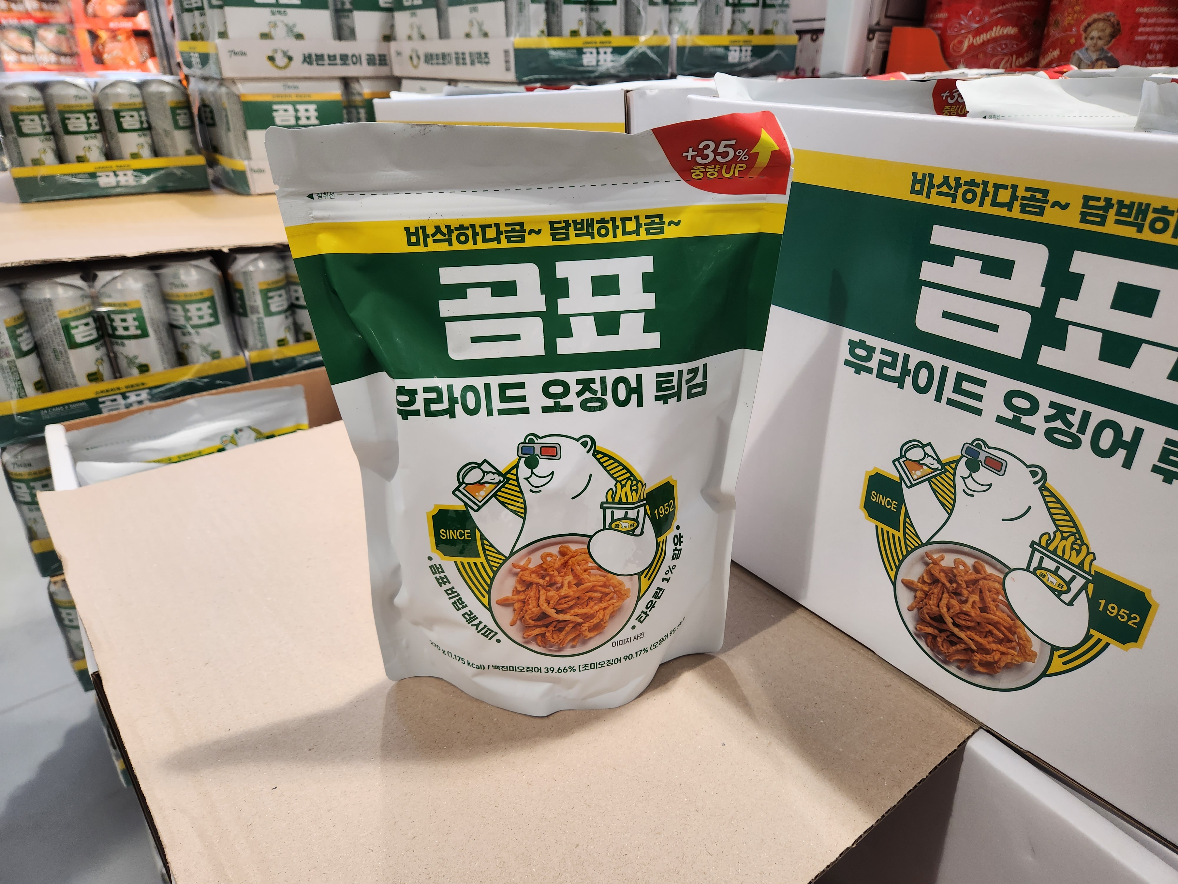 곰표 후라이드오지어튀김은 3개로 갯수 제한이 있드라구요. 얼마나 맛있으면 갯수 제한이 있지? 하는 생각에 한봉지 구매했습니다. 집에서 먹어보니 부드러운 오징어포를 튀긴 듯 했어요. 짭짤해서 안주로도 딱이다 싶었습니다.