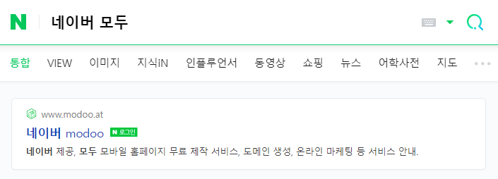 네이버 검색창에 네이버 모두를 검색하면 위에 사진과 같이 나옵니다. '네이버 제공, 모두 모바일 홈페이지 무료 제작 서비스, 도메인 생성, 온라인 마케팅 등 서비스 안내'라고 설명이 되어 있습니다.