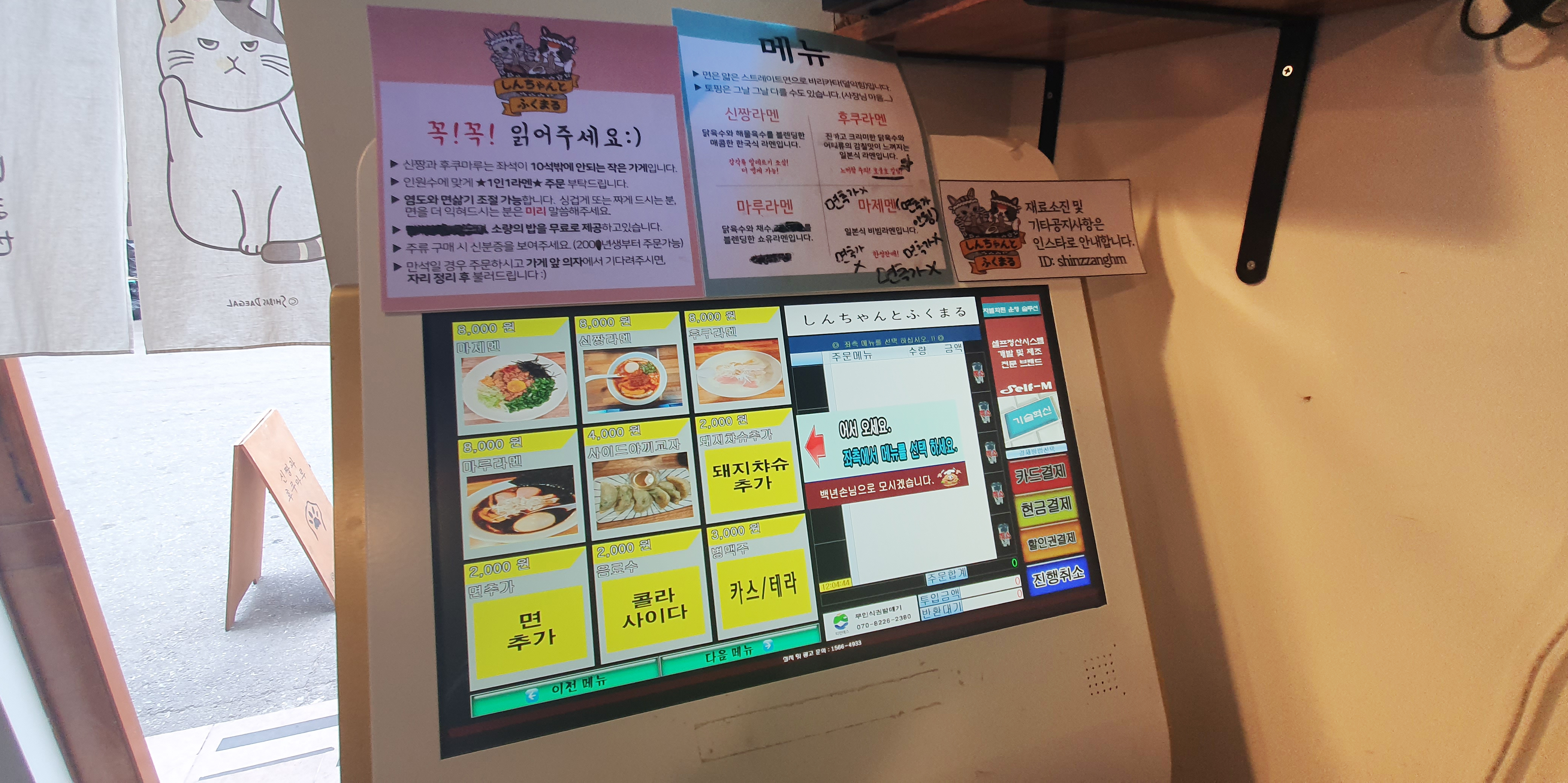 주문을 먼저 하고 자리에 앉는 방식이었습니다. 주문 화면 위에는 3가지 안내문이 있었습니다.