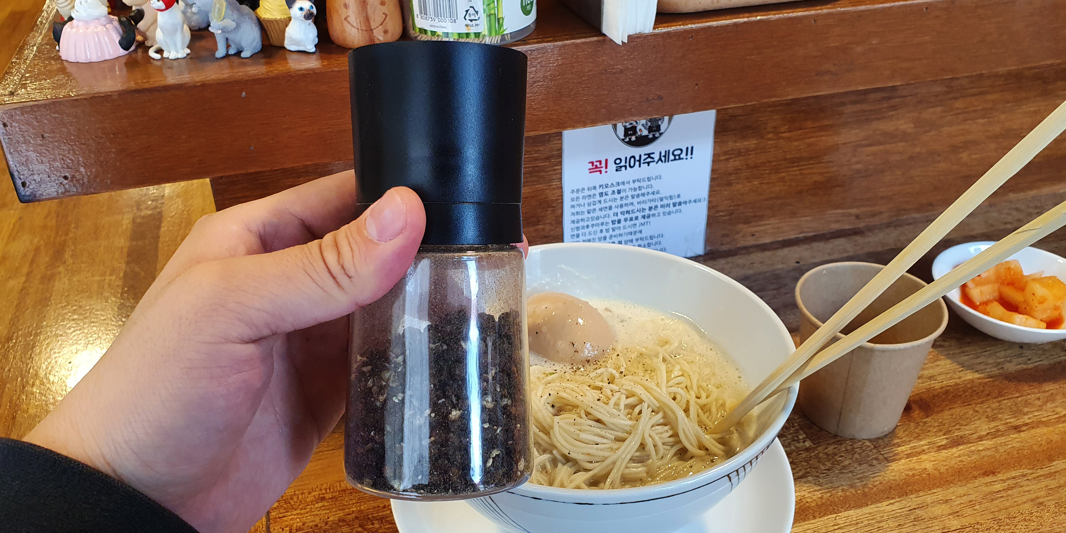 국물을 조금 떠먹어보고 후추를 약간 갈아 넣었습니다. 같이 간 친구는 엄청 갈아 넣더라고요.ㅋㅋㅋ 개인의 취향에 맞게 갈아 넣어 먹으면 될 것 같습니다.