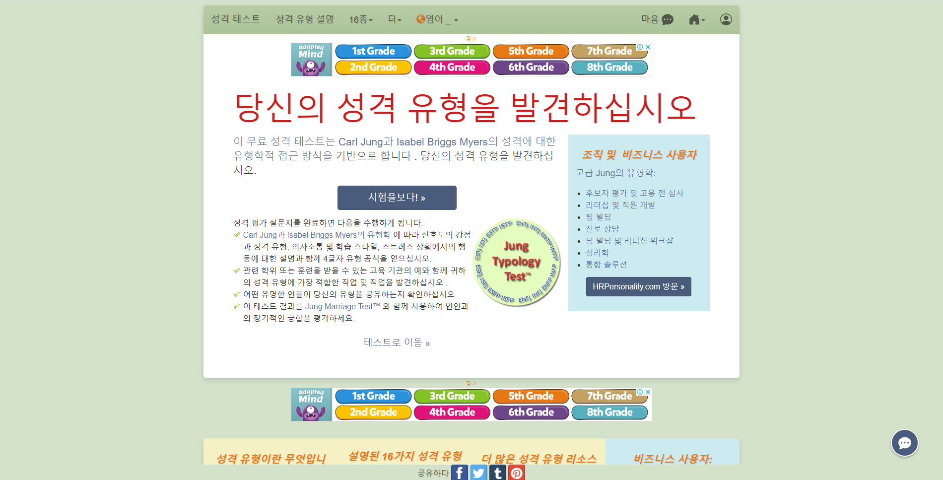 Humanmetrics는 고전적인 MBTI 테스트를 제공하는 사이트입니다. 질문에 답하면서 자신의 성격 유형을 확인할 수 있습니다.