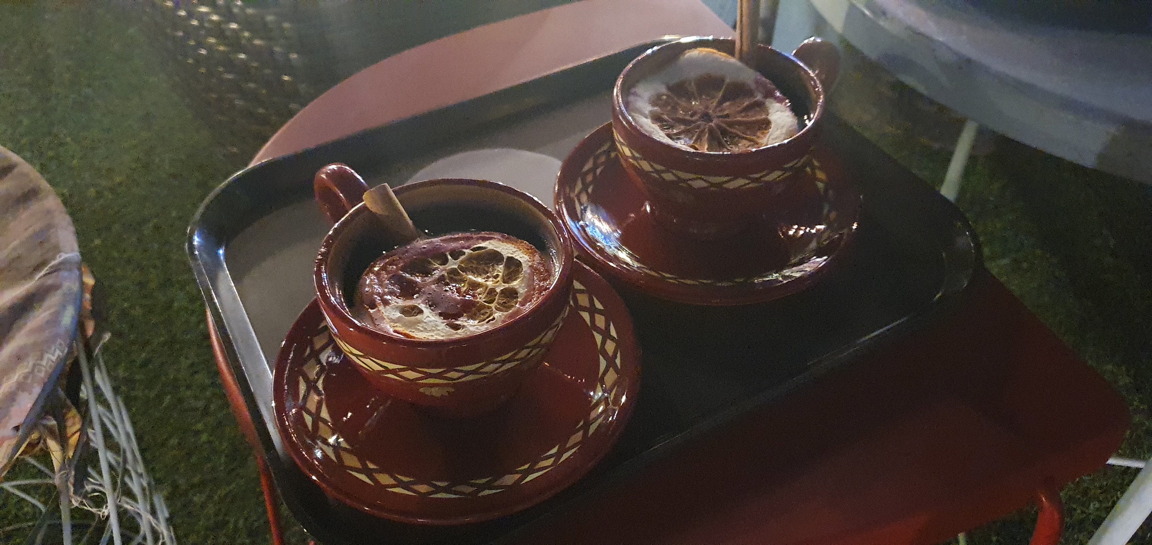 저는 따뜻한 수제뱅쇼를 골랐는데 바람 부는 루프탑에서 따뜻한 뱅쇼는 몸을 따뜻하게 해주는 것 같아 잘 선택했다고 생각했습니다. 그리고 와인을 고른 친구는 분위기 좋은 곳에서 와인을 마시니 더 맛있는 것 같다고 말했습니다. 티라미슈는 살짝 얼어있어 살얼음이 씹혔지만 개인적으로 달달하면서 부드럽고 맛있었습니다. 다른 친구는 약간 느낀 한 것 같다고 이야기를 했습니다.
