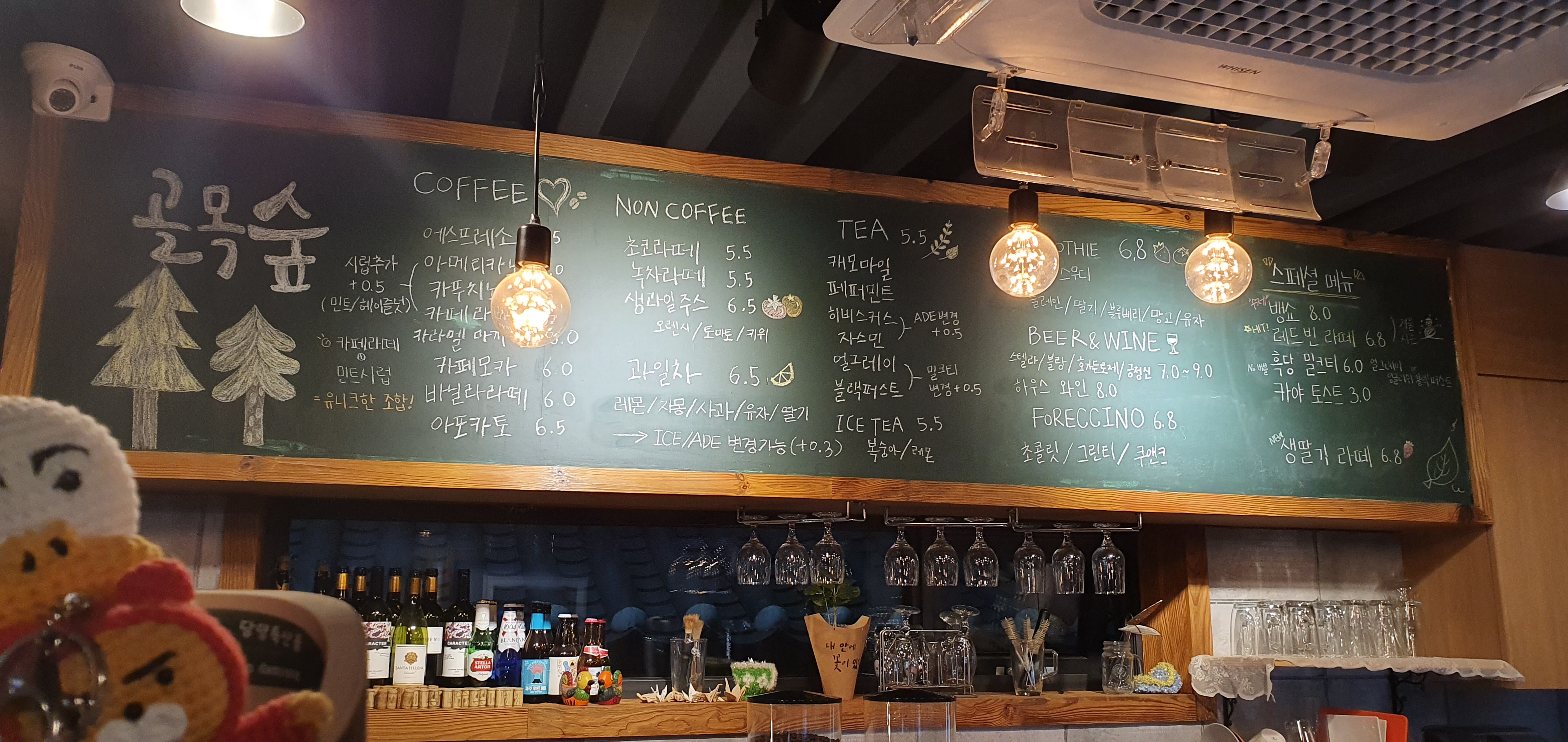 삼청동 루프탑 카페 골목숲 1층에서 레드와인 2잔, 수제뱅쇼 2잔, 티라미슈 1 접시를 주문했습니다. 와인과 뱅쇼는 각 8,000원 티라미슈 5,700원 총금액은 37,700원이었습니다. 주문을 마친 후 루프탑으로 올라갔습니다.