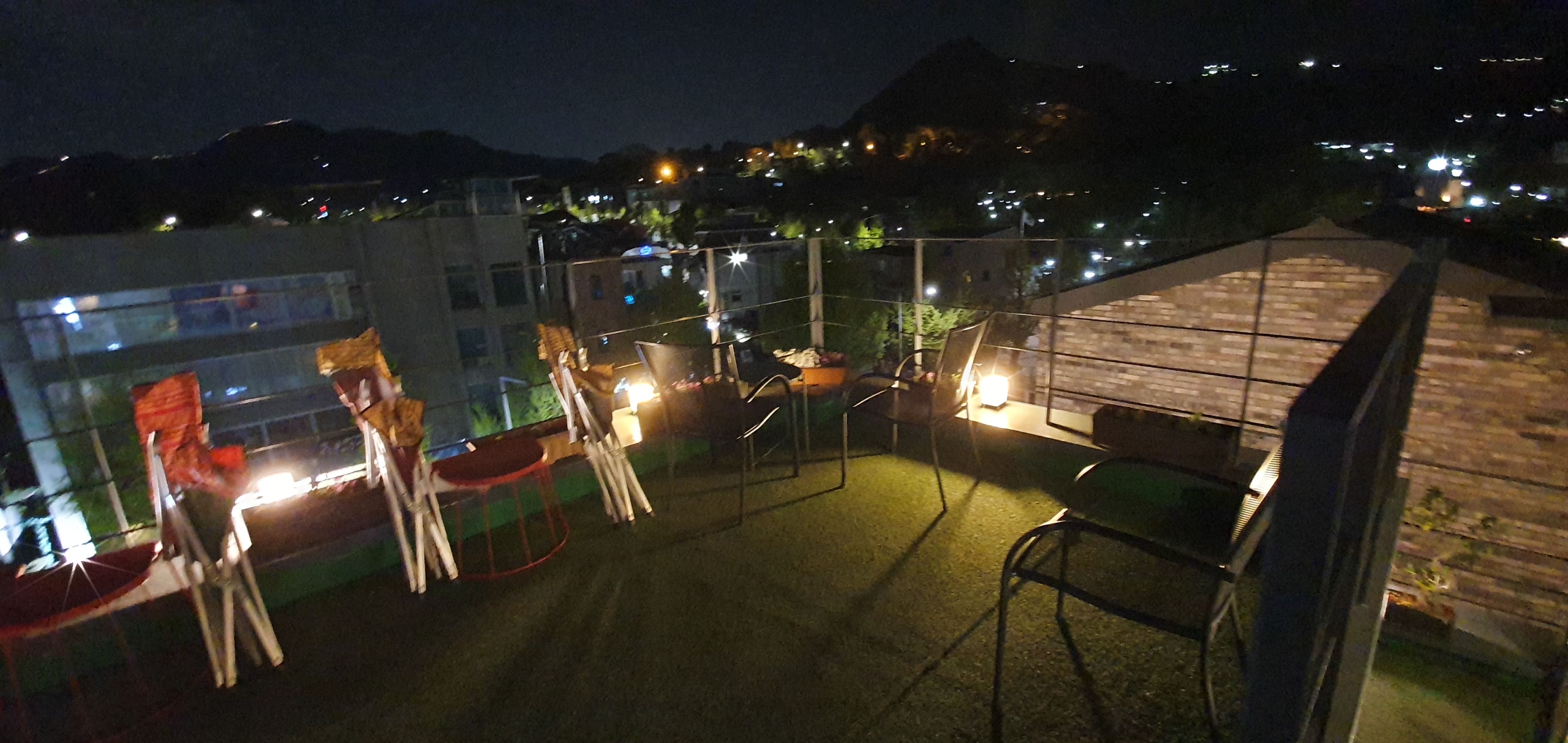 삼청동 루프탑 카페 골목숲에서 바라보는 야경은 답답한 가슴을 뻥~ 뚫리게 해 주는 것 같았습니다. 같이 간 친구 중 한 명은 몇 주 전부터 등산하러 가고 싶다고 계속 얘기했었는데, 등산해 정상에 있는 것 같은 기분이 든다고 표현하네요.
